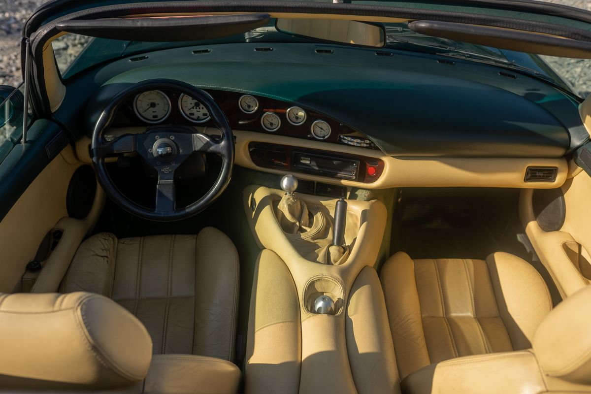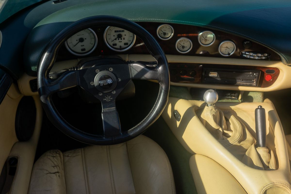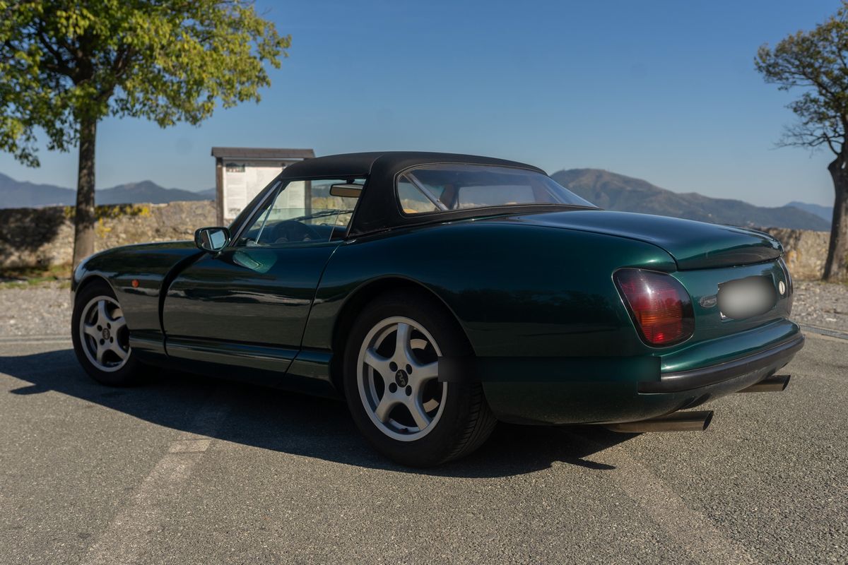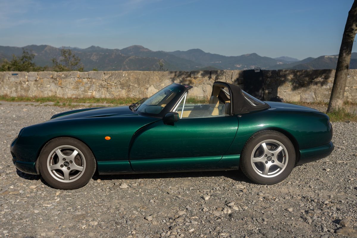 Produced by TVR between 1992 and 2003. It was first presented to the public at the Birmingham Motor Show. The car's name derives from the Chimera, an ancient creature from Greek mythology. Always an Italian car, it has three owners who have made a limited and touristic use of it. The second owner, following mechanical problems, replaced the 240hp original equipment engine with a 275hp "HC" (High Compression) type unit, consistent with the model. With this engine, the third owner (since 2006) has traveled more than 50000Km without any problems. Everything works perfectly. The wood veneer of the dashboard (which tended to flake off) was redone with an essence and wood grain similar to the original. No particular restoration; only regular maintenance performed before spring and summer use. The only important intervention: the reconditioning of the steering box. The car has never raced. It was the subject of a report in the magazine RUOTECLASSICHE in December 2006 as "instant classic".