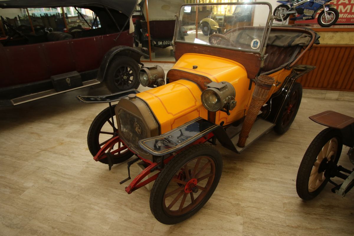 Le Zèbre was a French car manufacturer active from 1909 to 1931. In 1908, Jules Salomon, a young entrepreneur and Jacques Bizet, son of the famous composer Georges Bizet, built their own little car which had the advantage of offering the comfort of a car superior, but at a very low price. The model was baptized Type A and, starting from 1909, about a hundred copies were sold. As soon as the marketing of the car started, the brand problem arose. Both the two young builders wanted to give it their name, and a completely different name was chosen to get out of the stall: "Le Zèbre" (the zebra, in French). This example of Le Zèbre A, series III, was produced in 1913. It has an ASI homologation certificate and has been standing still for more than 30 years with the need for consequent restorations. It has bodywork painted in yellow gold and black (with red frame), the interior is in leather, and the hood is foldable.