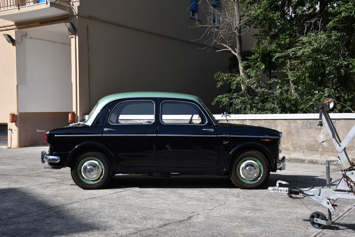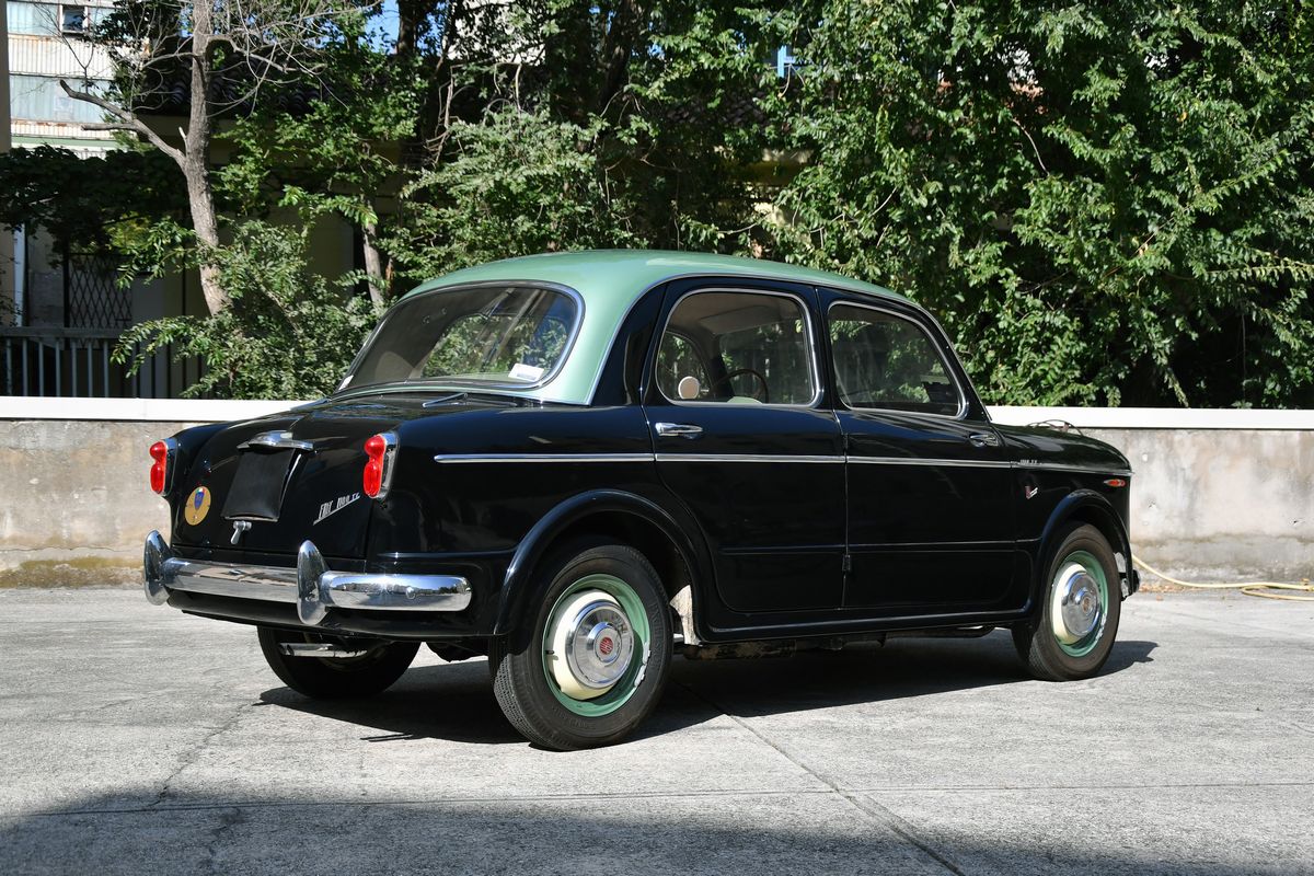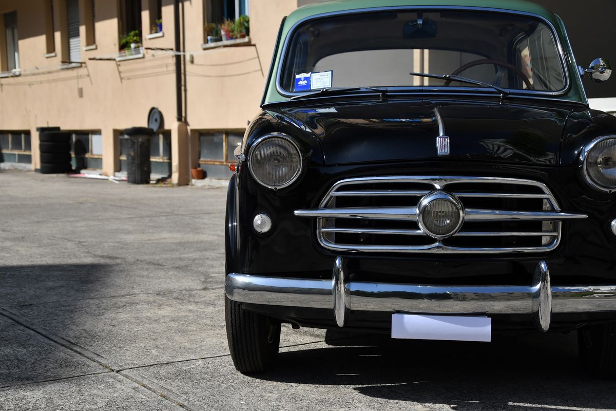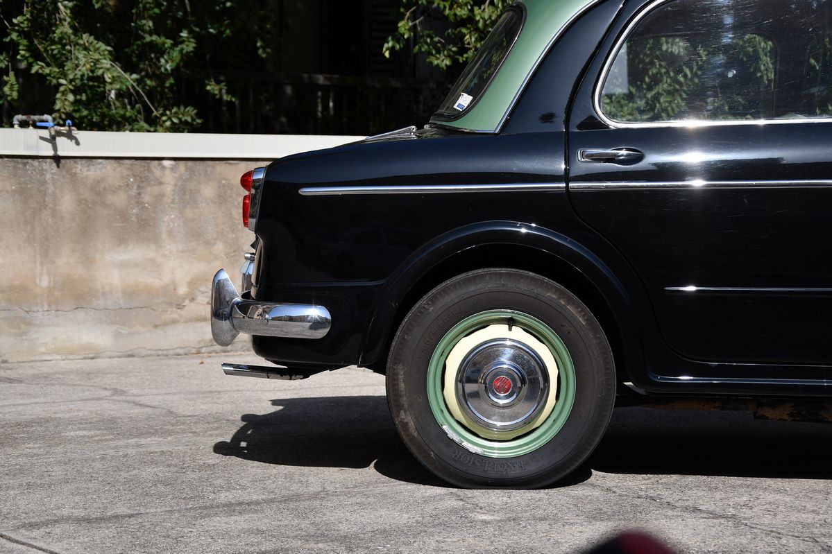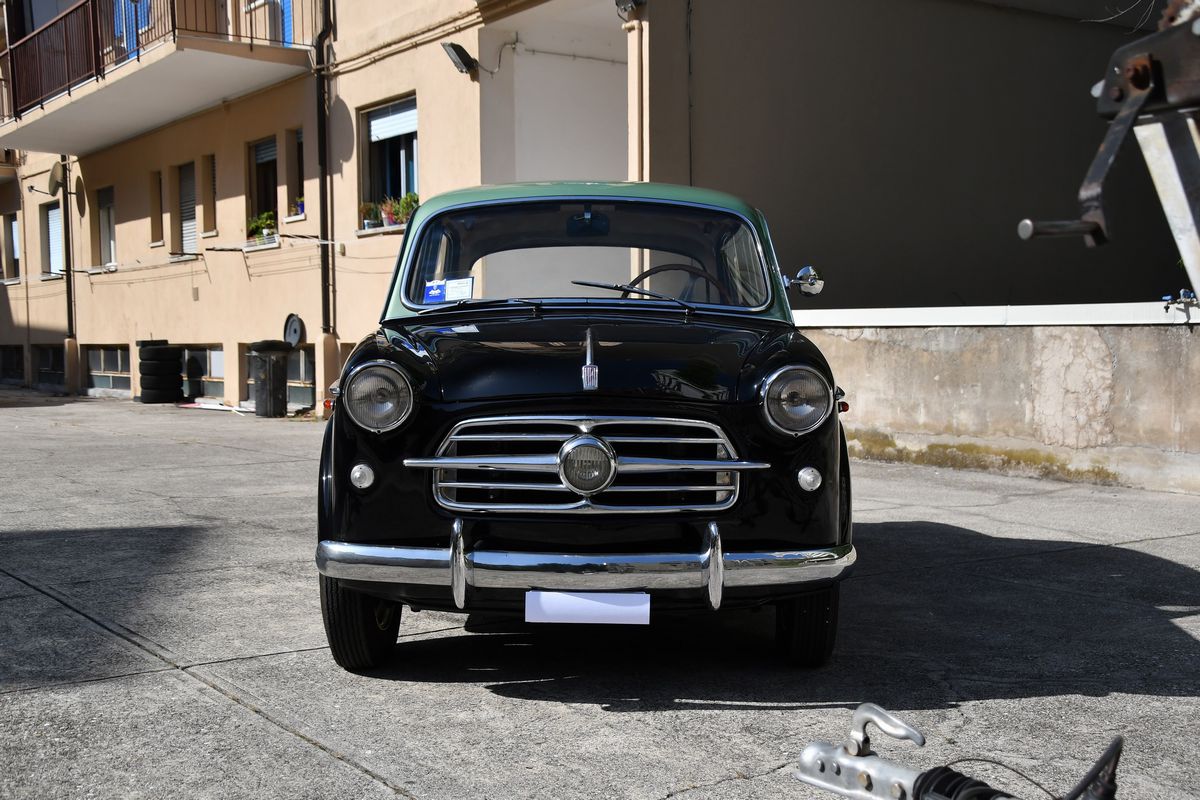 The Fiat 1100/103 was born in 1953, maintaining the 1089cc 4-cylinder engine of the 508, but mounted on a load-bearing chassis, with a 4-door sedan body. In October of the same year, a sportier version was presented: the 1100 TV (Turismo Veloce); with the engine increased first to 48 and then to 50 hp. Externally it was recognized by its two-tone paintwork and rich finishes. Our car, chassis no. 176281, assembled in the Fiat Carrozzerie Speciali department, was registered in Messina on 15 July 1955. In 2007 it was bought by the previous owner who began a complete restoration completed in 2013. It comes in a two-tone black and green configuration, with beige and green interiors. Both the bodywork and the interior are in impeccable condition. The mechanics have been upgraded with a 40 Weber carburetor, tappet cover and aluminum oil pan but the block is original. Since the restoration it has traveled approximately 2000 km. It retains its first plates and logbook and is FIVA and ASI Targa Oro certified. Suitable for regularity rand potentially Mille Miglia elegible.