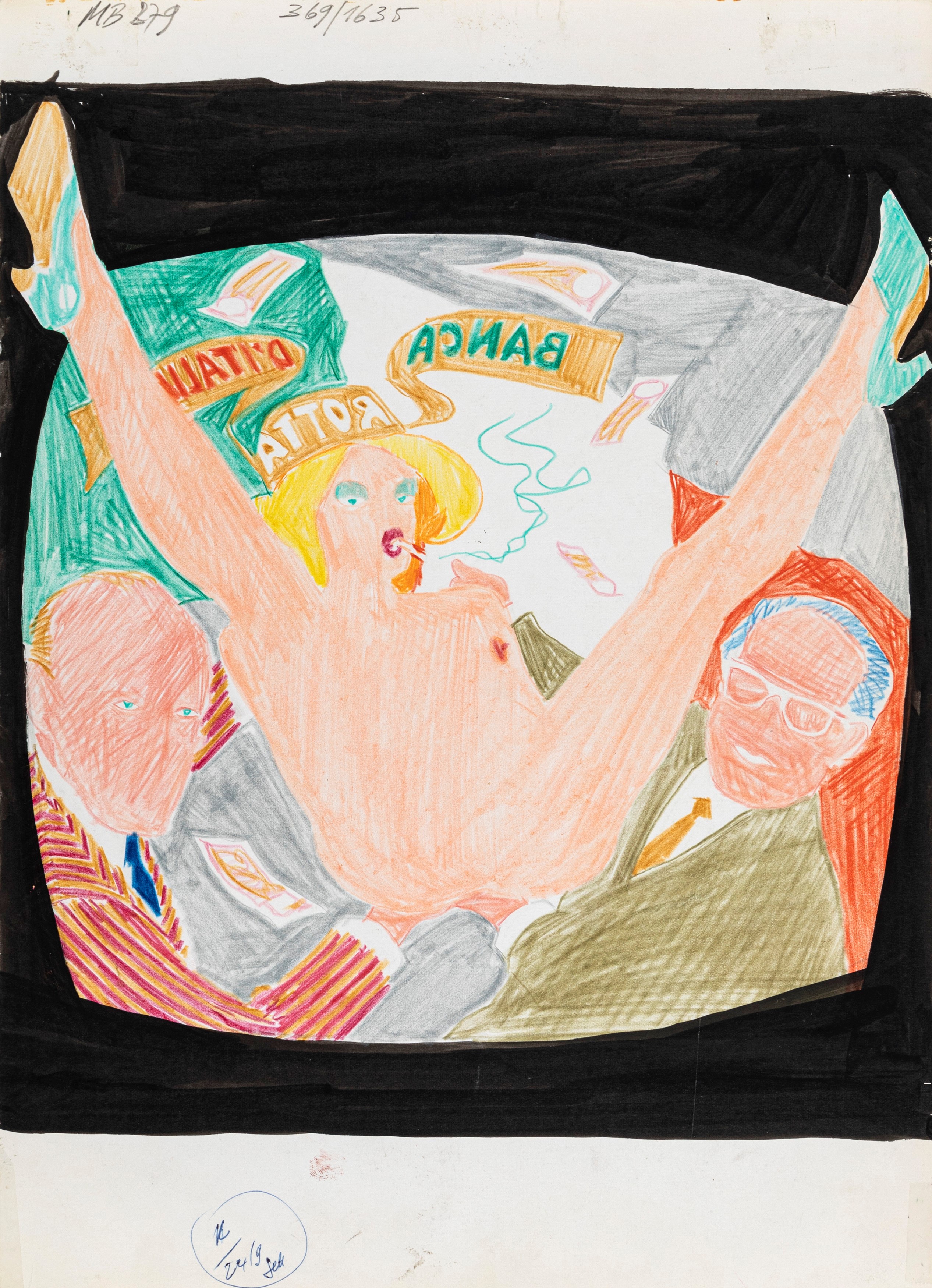 Original cover made by Manara for Telerompo n. 10, published by Publistrip in 1974. Colored on the back with ink and pastel.
