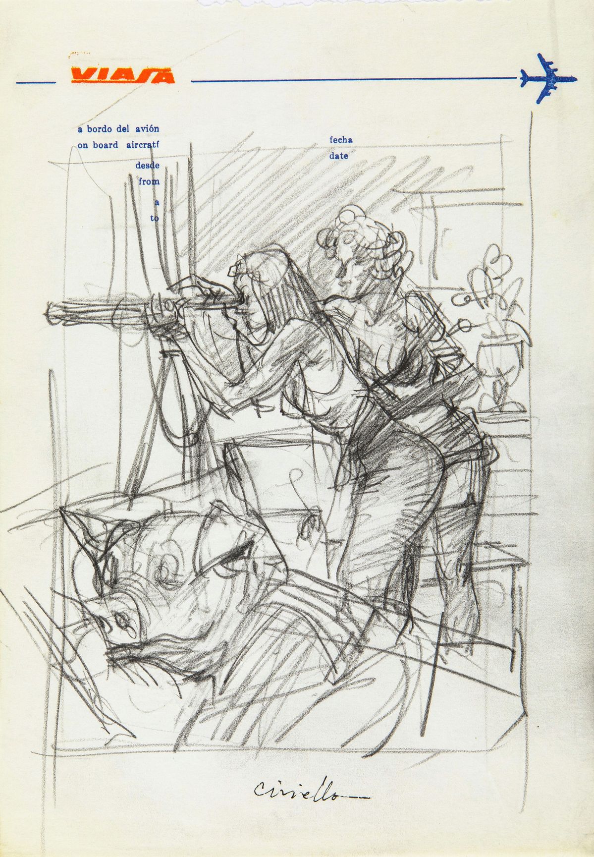 Original cover made by Ciriello for "Le due erotomani", published on Pig n. 27 by Edifumetto in 1986. Attached is the preliminary pencil on paper (18.5 x 26.5 cm), signed.