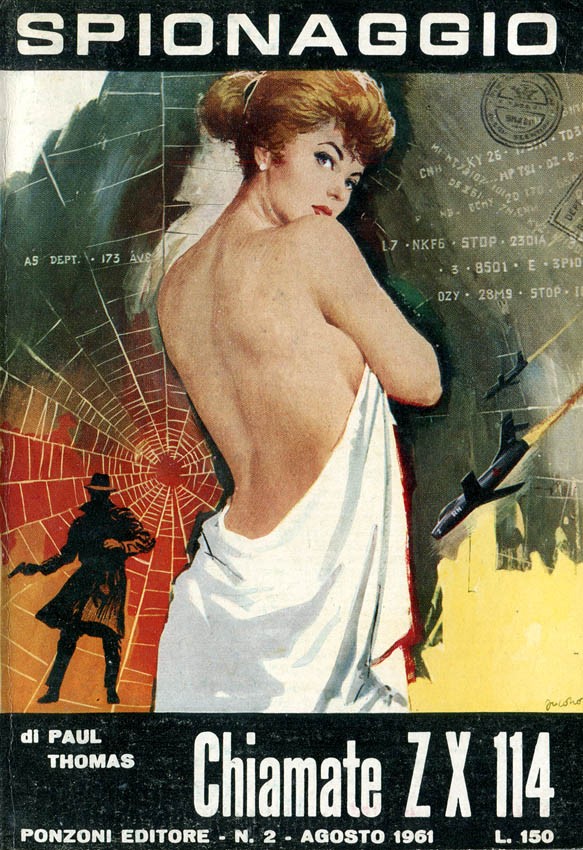 Original cover made by Jacono for the novel "Chiamate ZX 114" by Paul Thomas, published in Espionaggio n. 2 by Ponzoni Editore in 1961. Signed.
