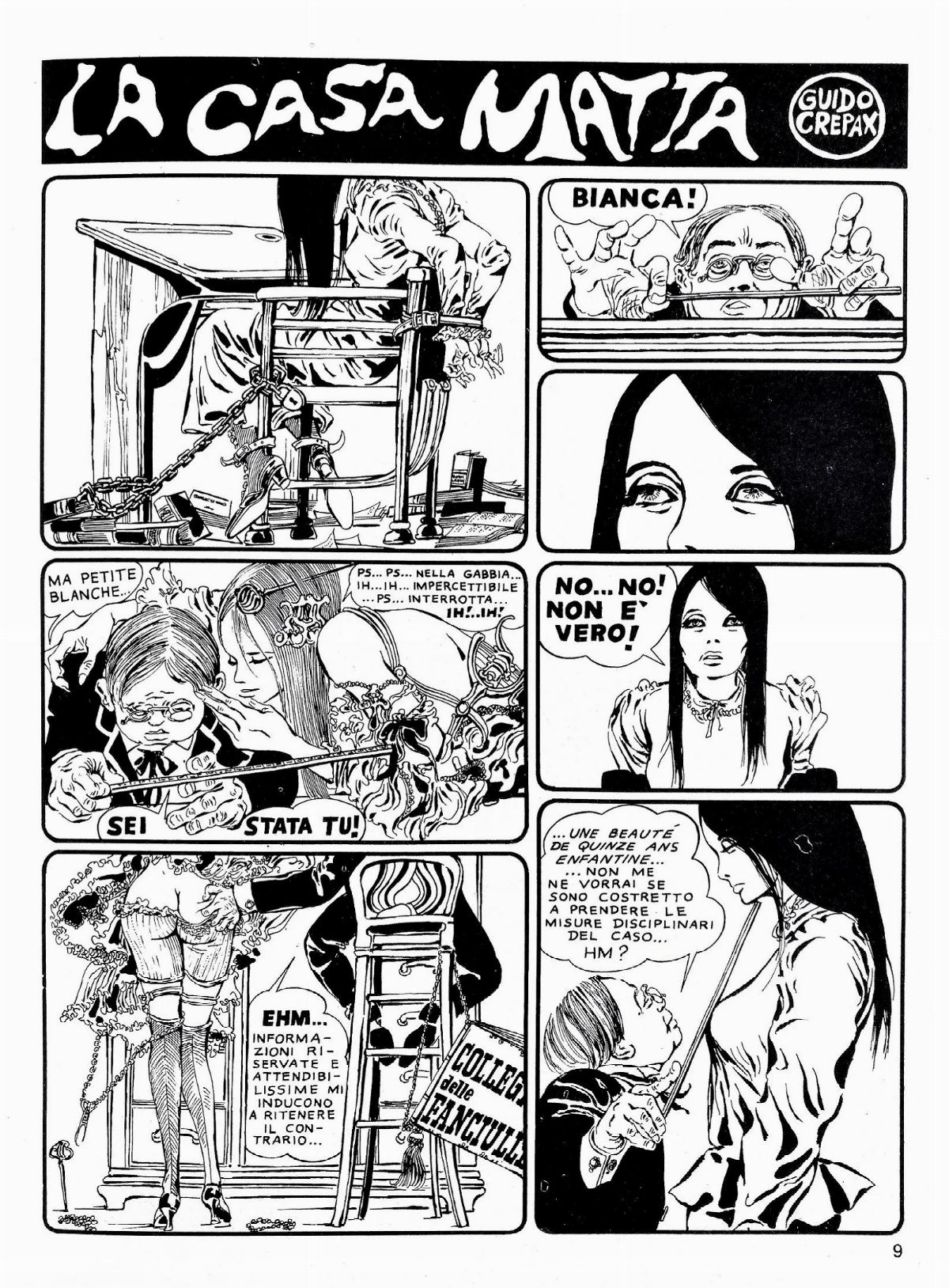 Original title page made by Crepax for the volume "La casa matta", published for the first time by the EDIP publishing house in 1969. After the success achieved with his Valentina, born in 1965 in the magazine Linus, Crepax in 1968 dedicated himself to a another heroine, Bianca. With "La casa Matta", Crepax gives life to one of his most beloved and certainly among the most transgressive characters, this page is the first ever appearance of the seductive Bianca, in its first editions in fact the cartoon above was covered by the title of the work (see attached image). Of great rarity. Signed and dated.