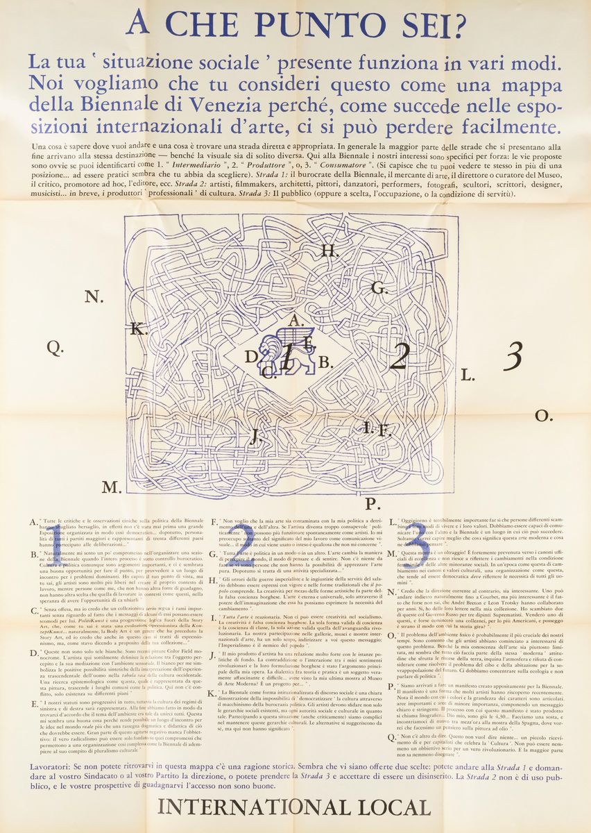 b.(rif. Joseph Kosuth) International local, 1976, folded poster inside original case, cm 98,5 x 140 (paper measure), (unframed).
