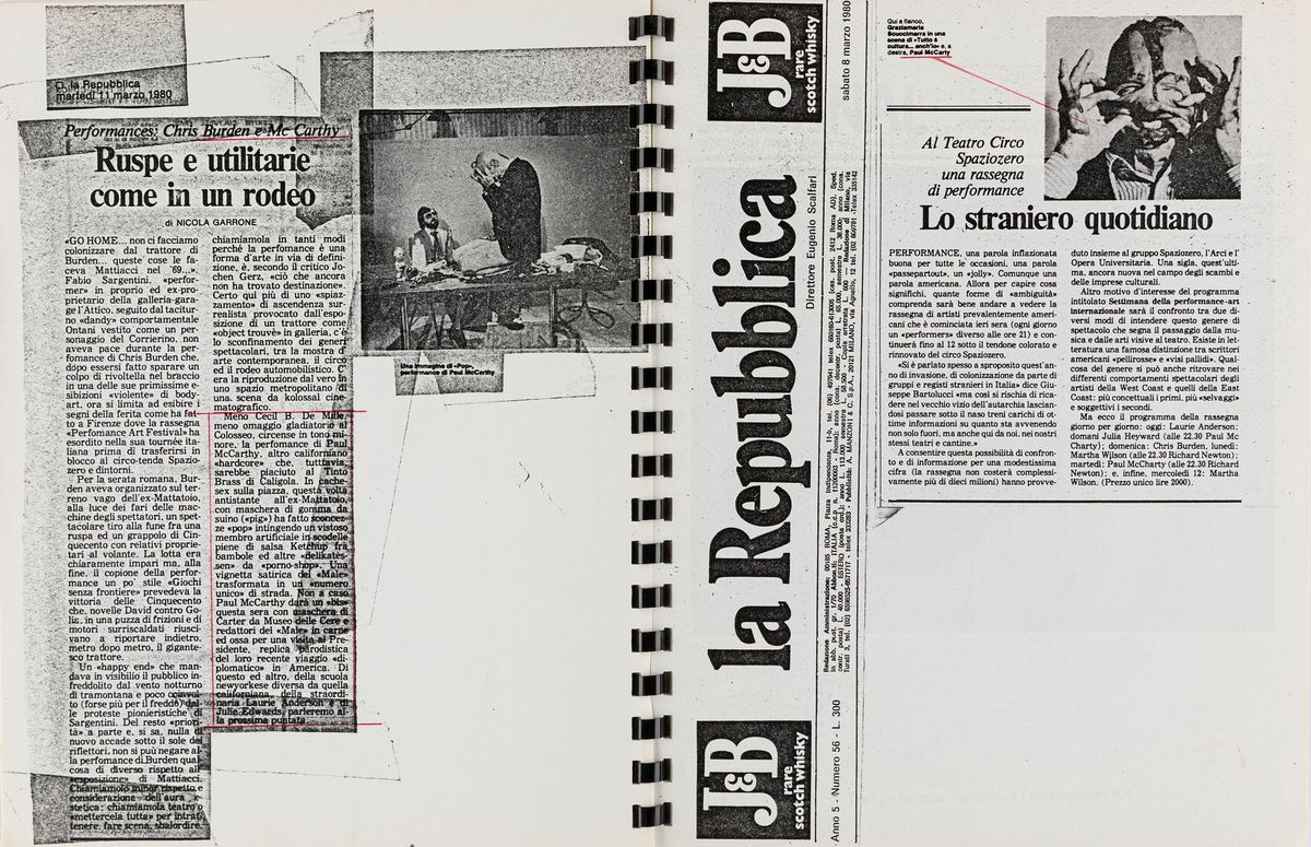 collection of prints of articles regarding Paul McCarthy artistic production