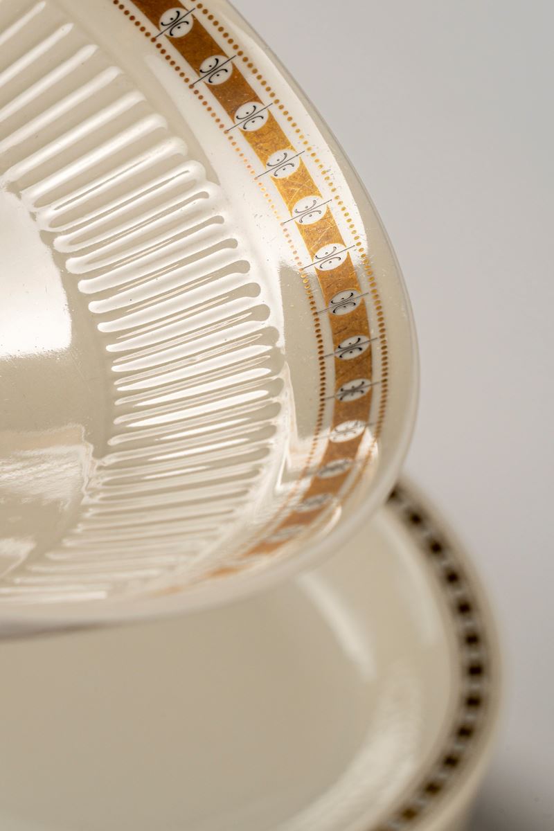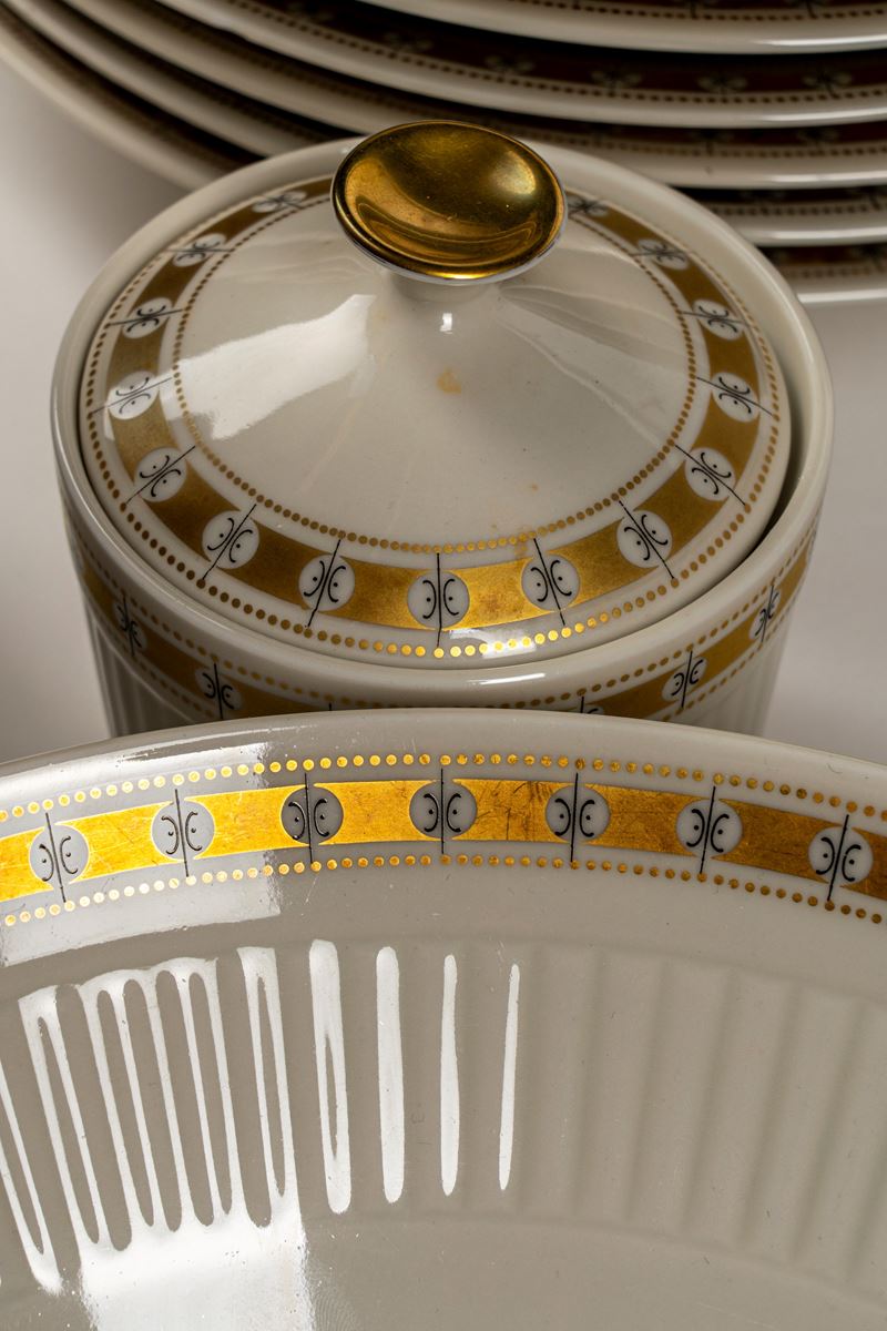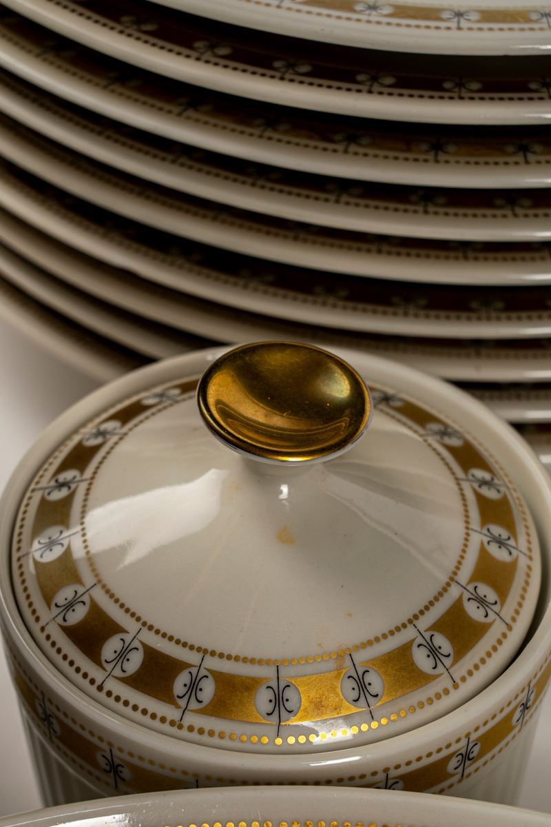 Cream-colored porcelain service with gold edge and ribbed frill, Bavaria, Johann Seltmann Vohenstrauß, 20th century