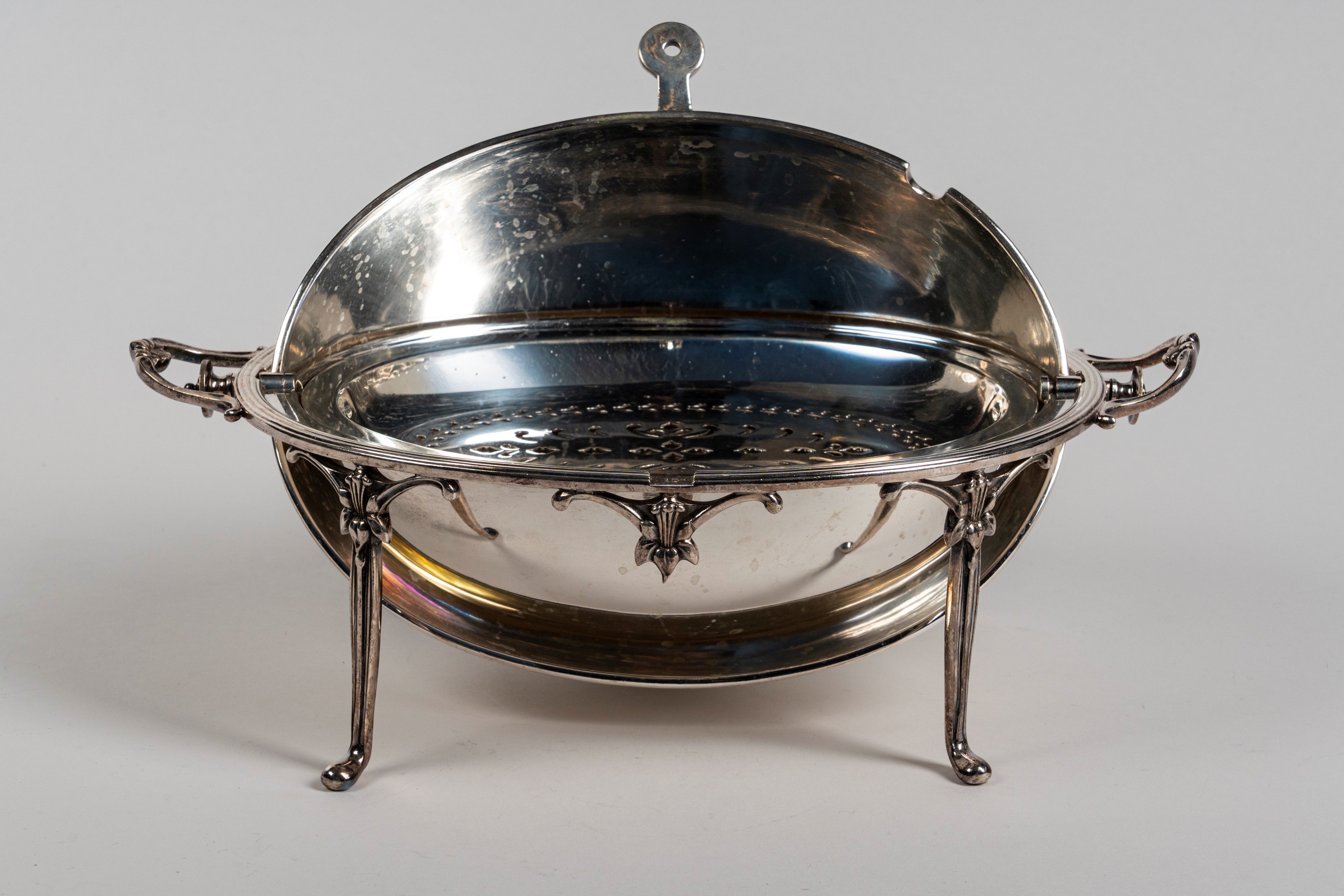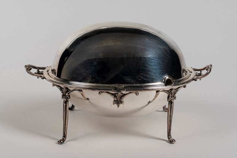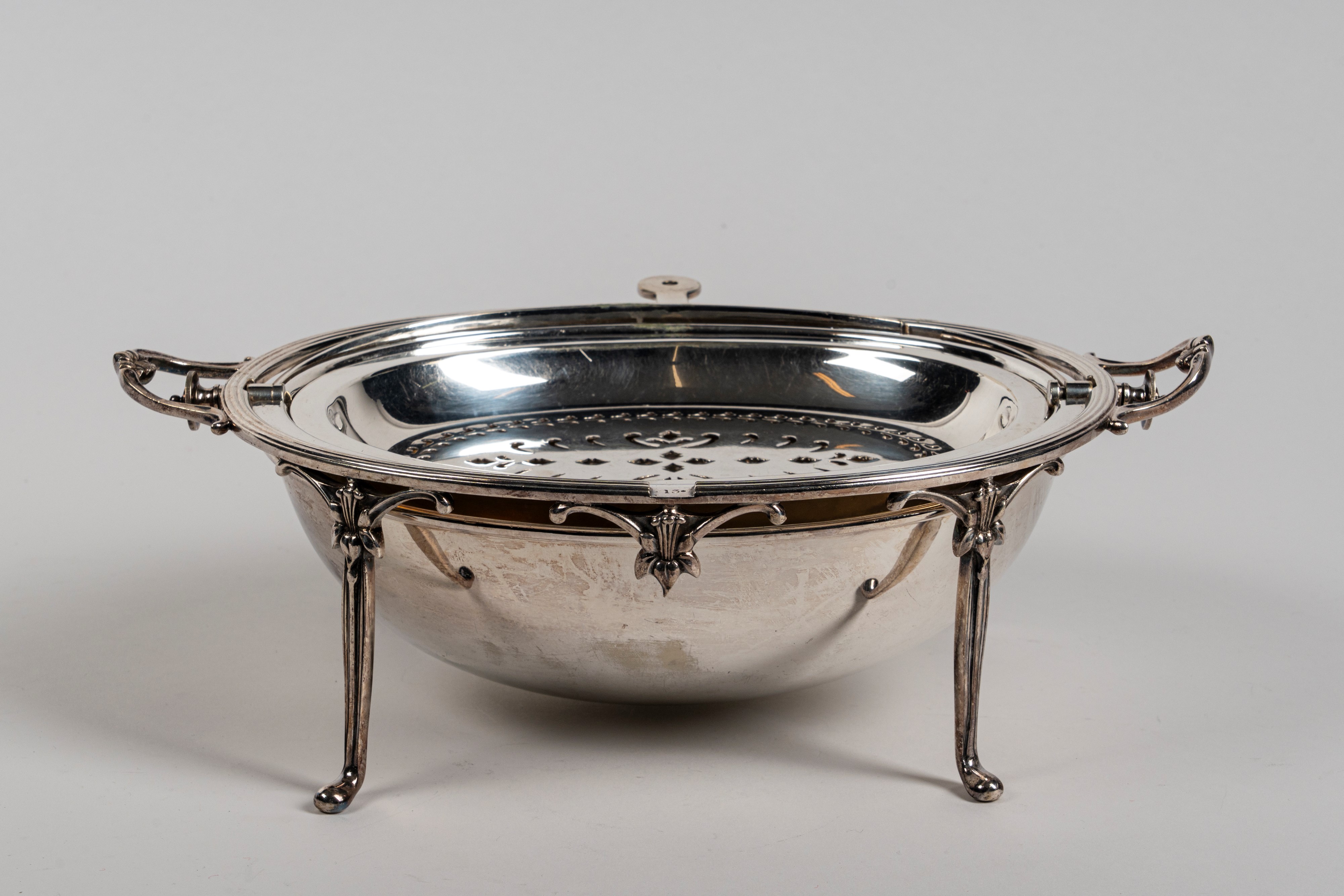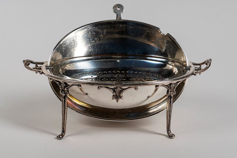 with an opening ovoid body, internal part with perforated tray, handles and curved legs.