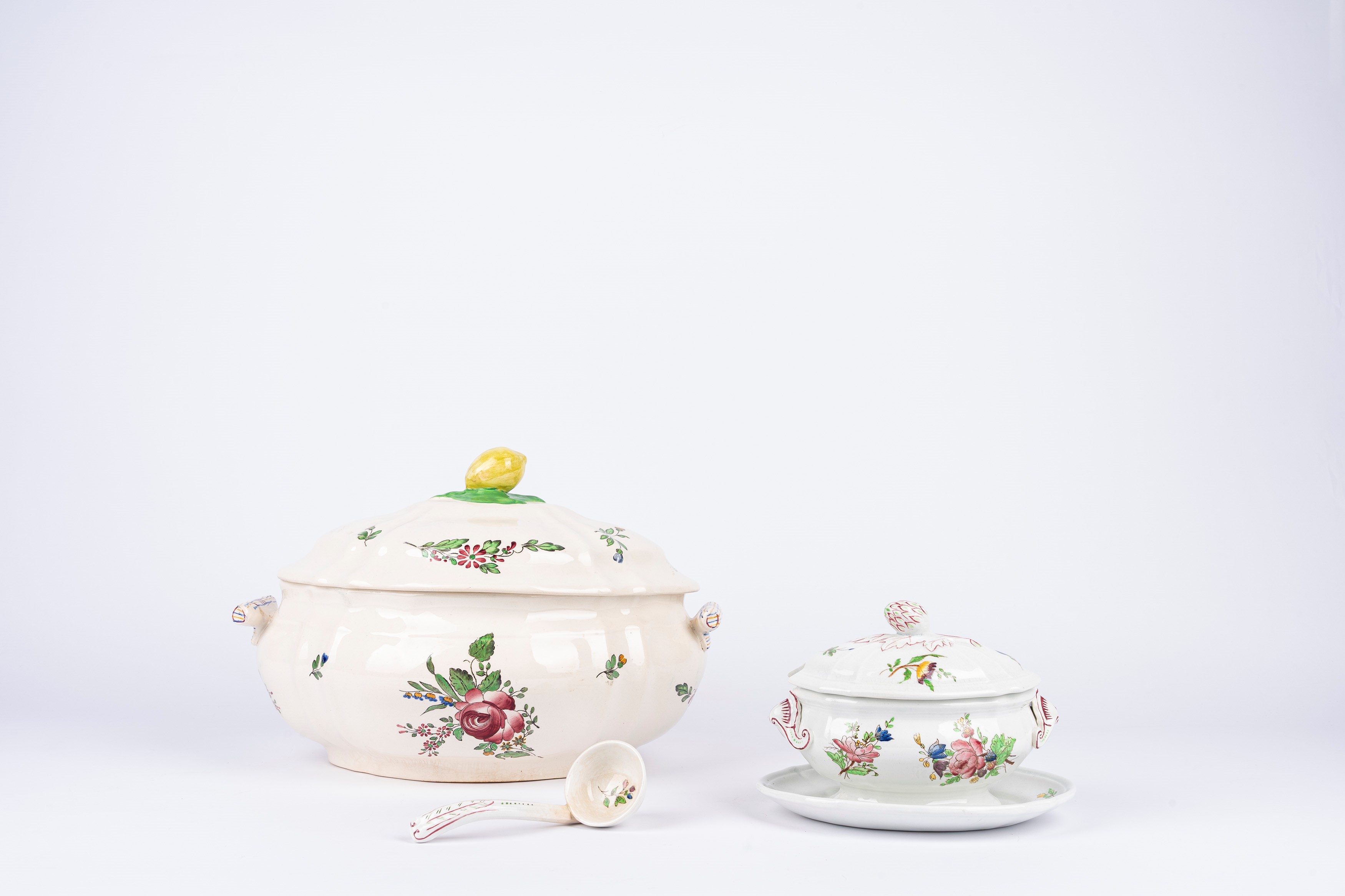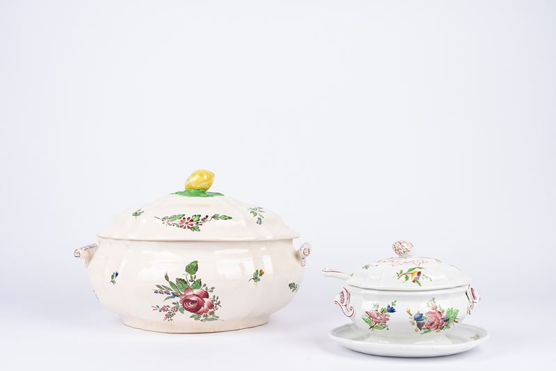 Porcelain tureen and gravy boat decorated in polychrome, Strasbourg Richard