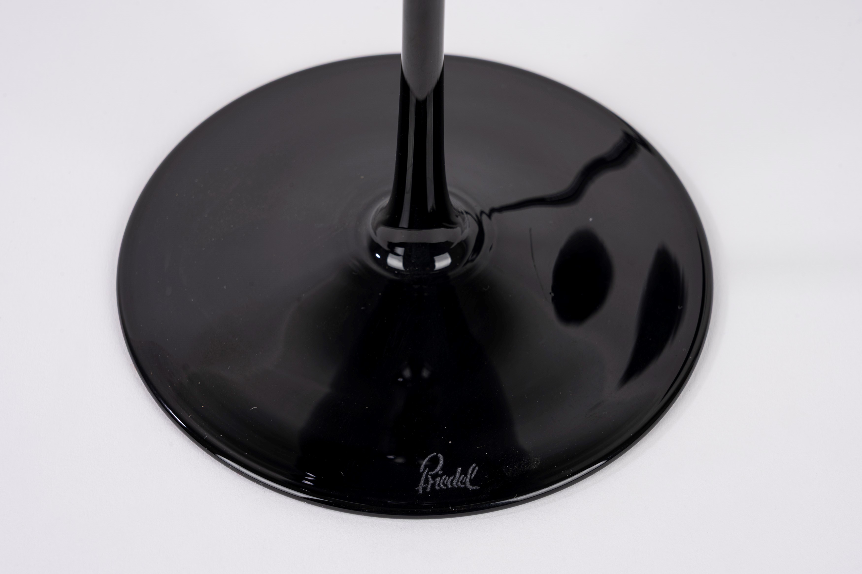 Pair of colorless glass bottles engraved with a geometric pattern with a faceted ball cap