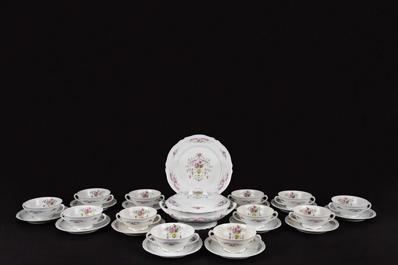 consisting of: 12 cups with saucers, a soup bowl and 12 flat plates