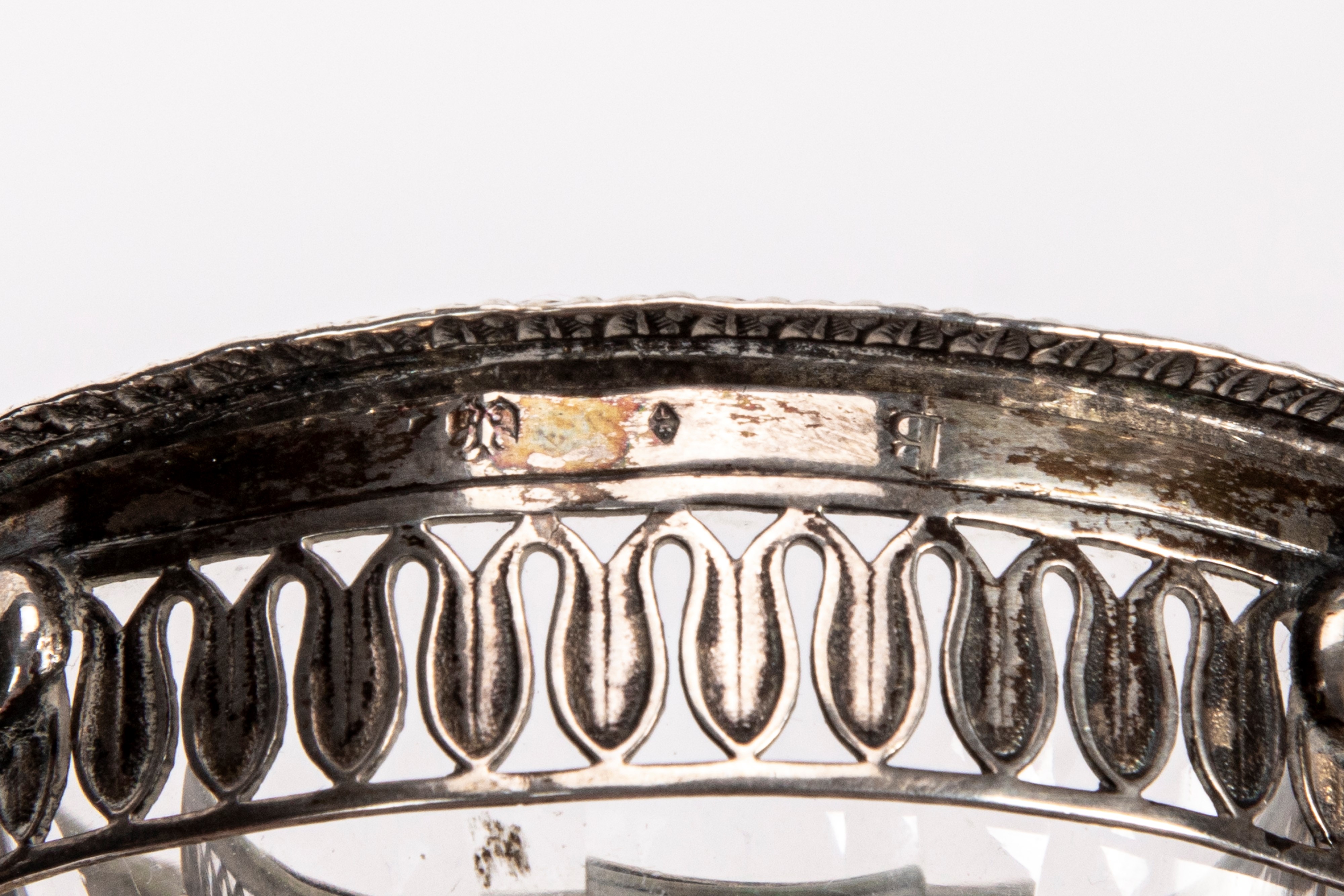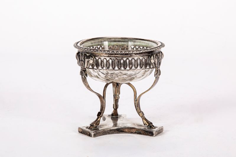 in silverwith perforated and chiseled palmette band, internal part in cut crystal.