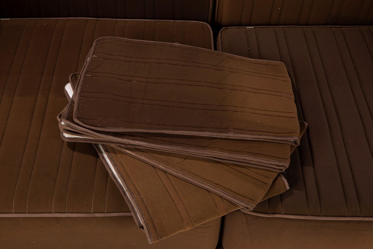 model Settebello composed by six polyurethan elements with borwn fabric covering.