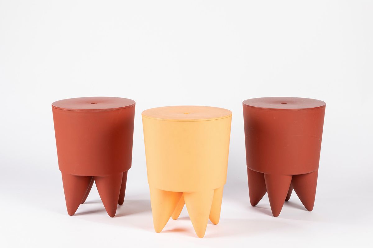 tre sgabelli/contenitori in plastica.