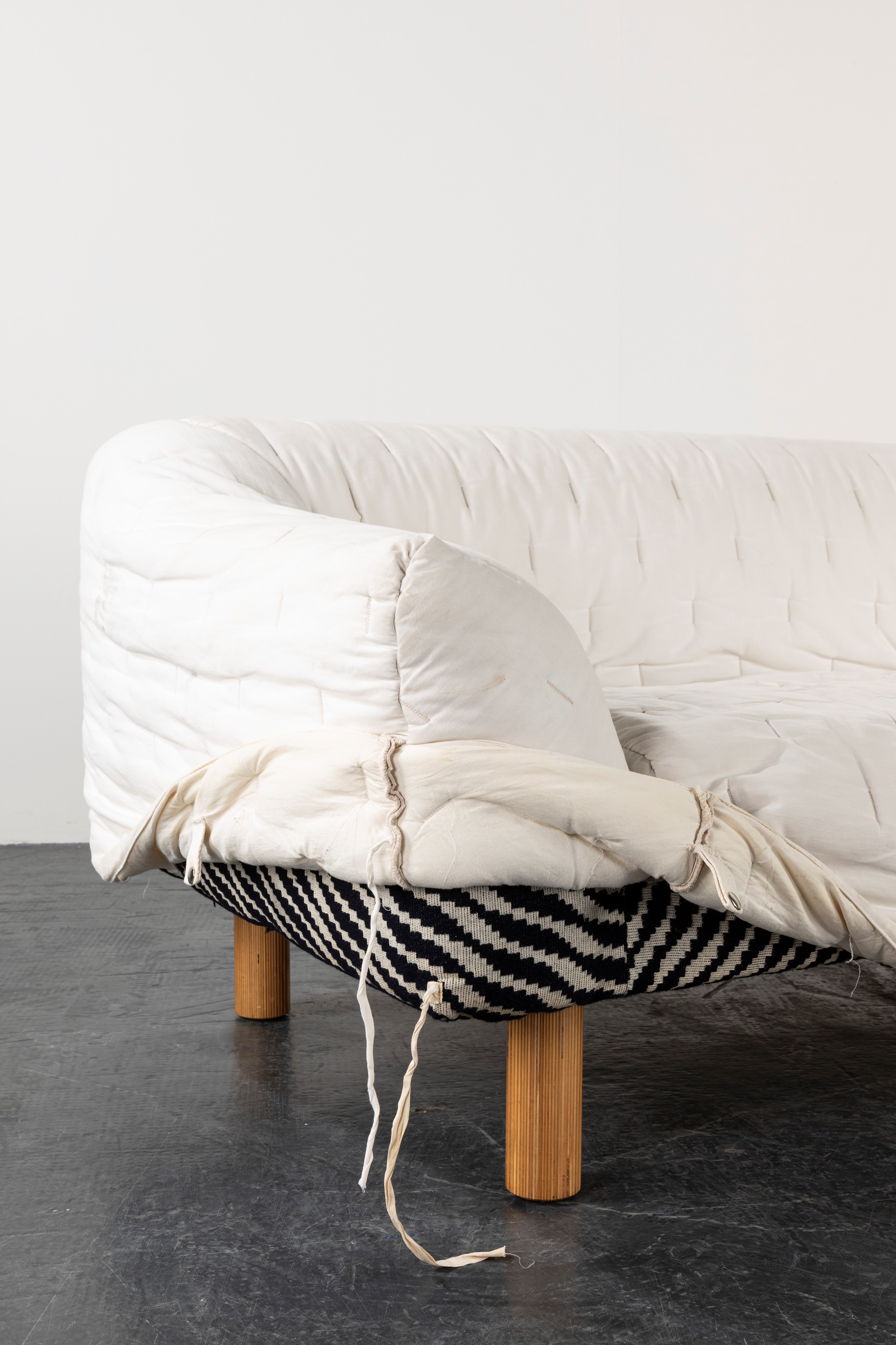 two-seater sofa padded and covered with quilt.