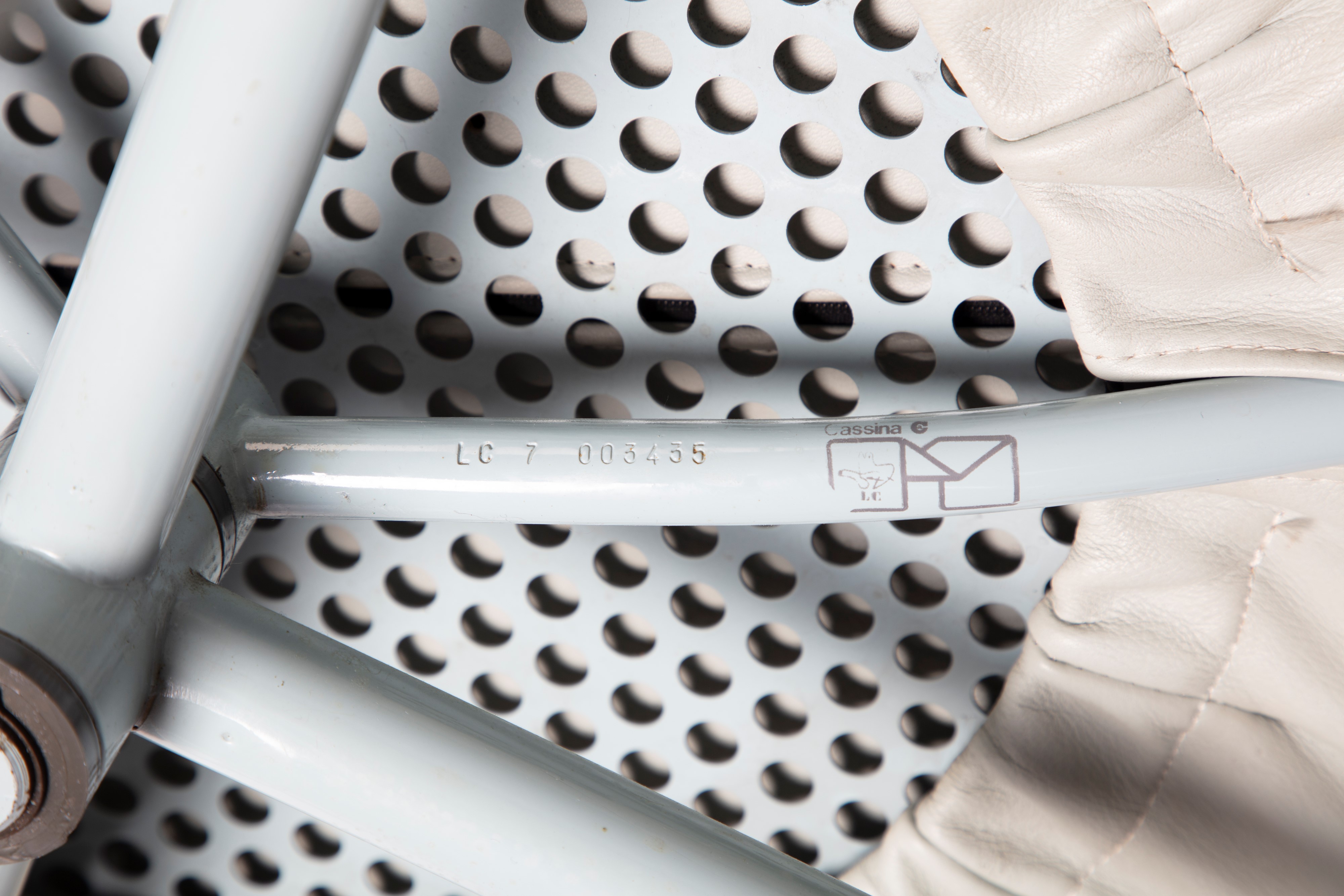 Numbered LC7 003435 Cassina and Cassina logo under the seat
