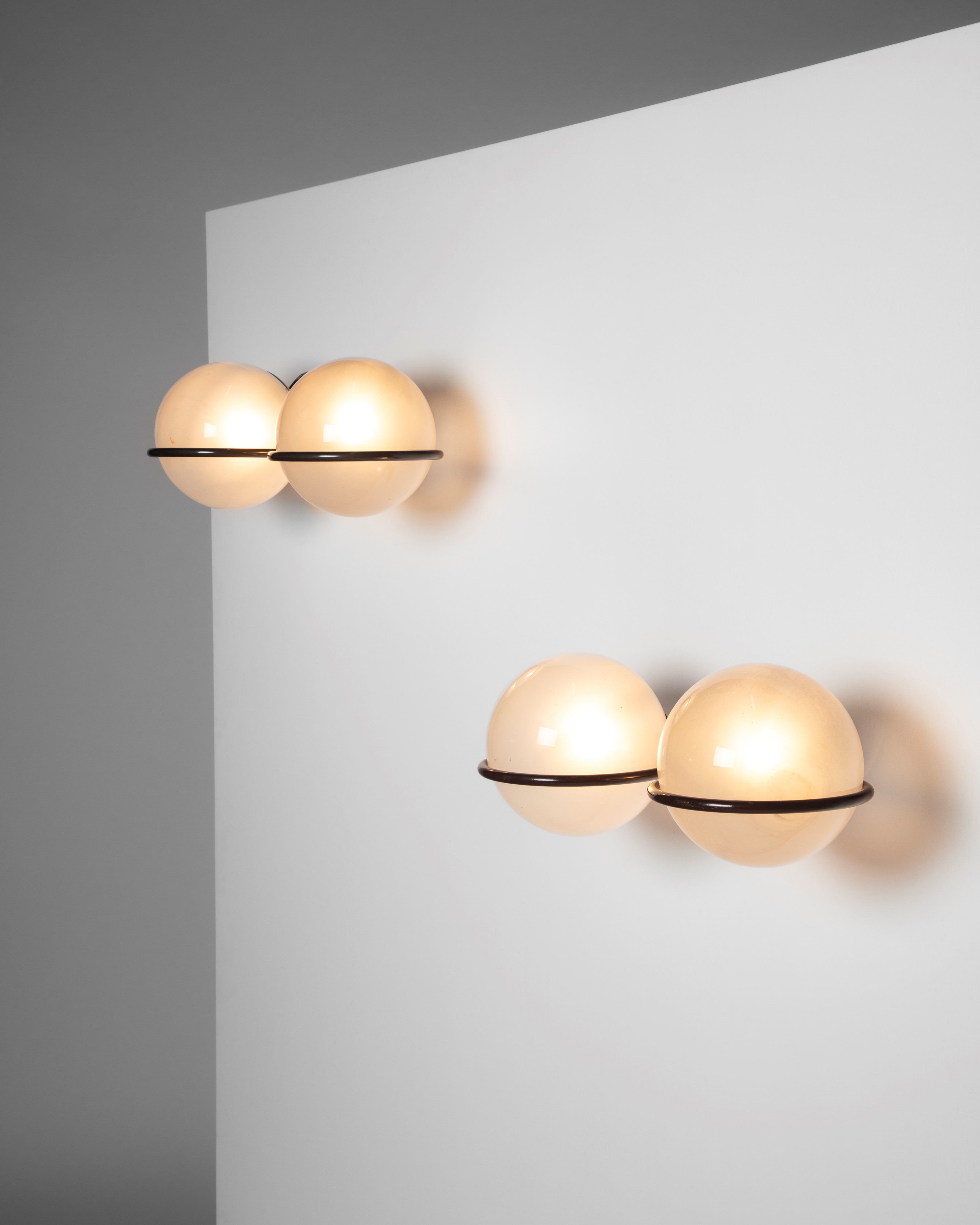 Opaline glass, lacquered  aluminum and oxidized aluminum