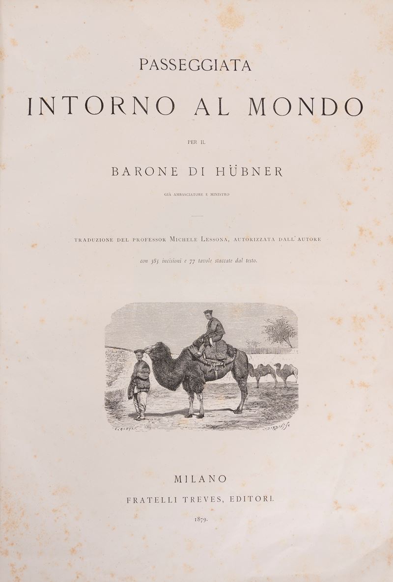 Milan, Fratelli Treves, 1879. In folio. Copy translated by Michele Lessona, illustrated edition with full-page plates and title, minor foxing. Bound in red half leather and blind-decorated hardback boards, gilt title on the four-ribbed spine, minor defects.