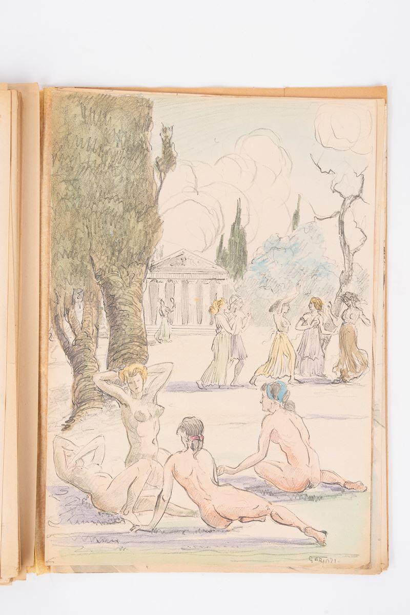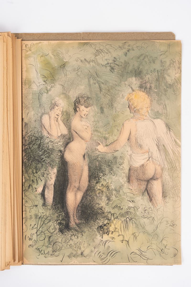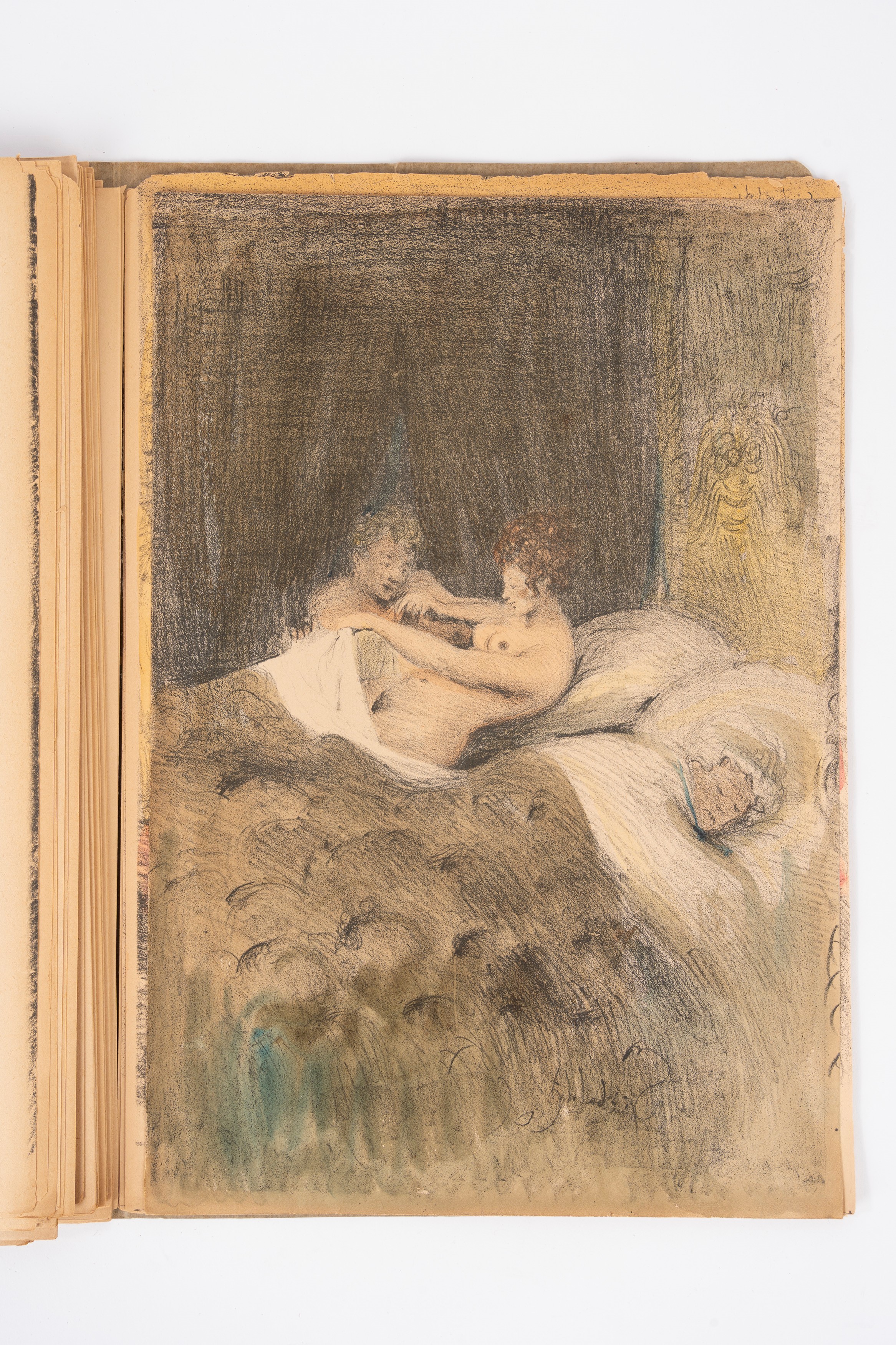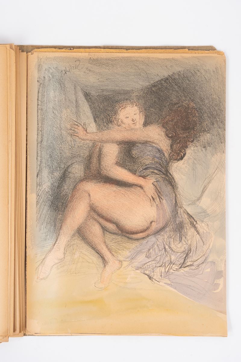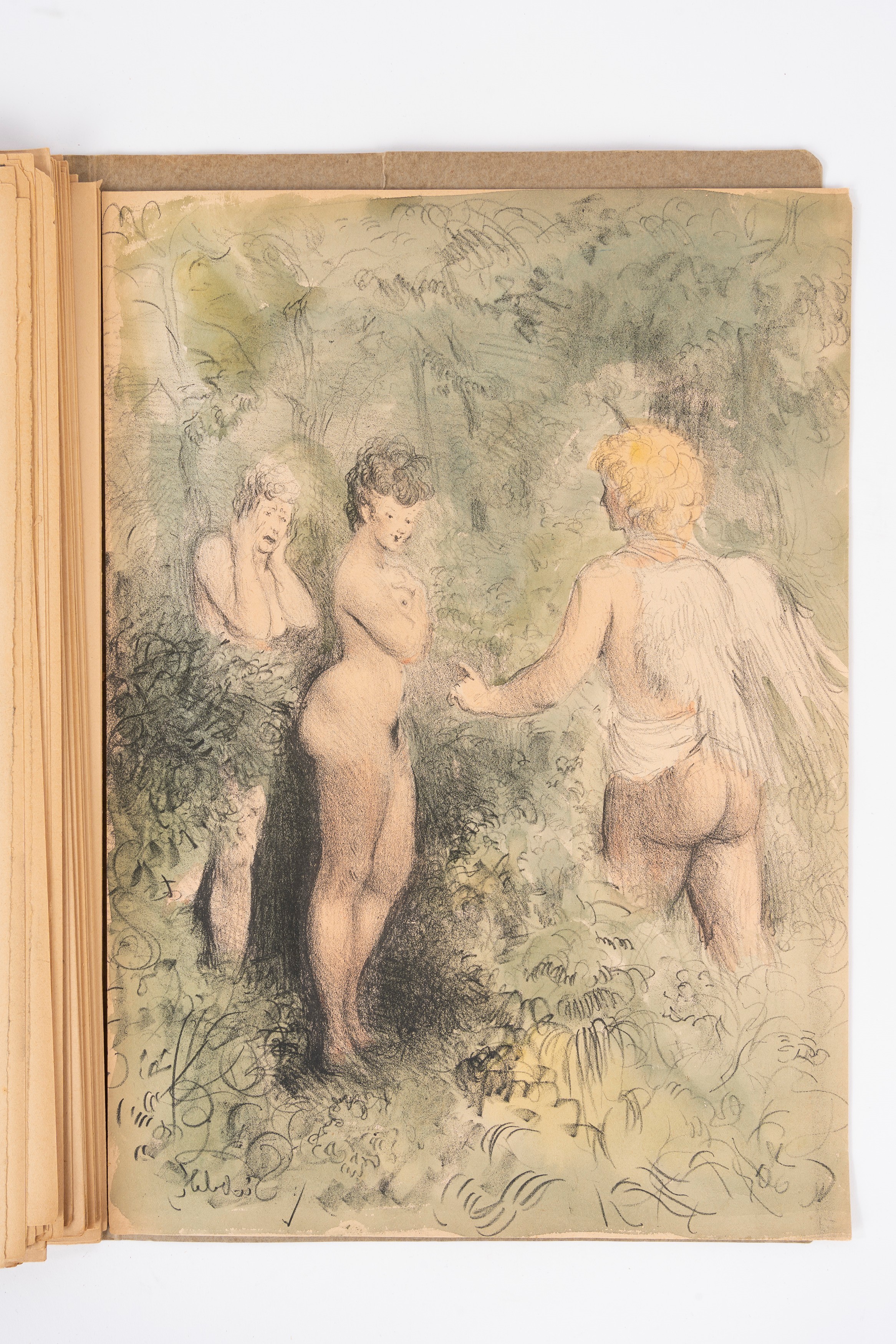 Turin, Dionysos - editore Vogliotti, 30 June 1948. Copy 29/296 common, enriched with 16 plates outside the text (lithographs) by the artist Adriano Sicbaldi, the images depict licentious and erotic scenes in keeping with the satirical and "fat" tone of Batacchi's stories, very fragile paper, untouched copy. § Pierre Louys. Aphrodite . Turin, Dionysos - editore Vogliotti, 30 June 1948. Copy 7/299 common, enriched with twelve plates outside the text painted in watercolor by the painter Gariazzo, all Pierre Louys. Aphrodite. Original, with tears and defects.
