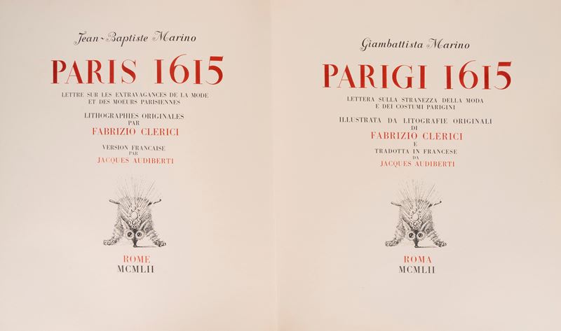Paris 1615. A letter on the strangeness of Parisian fashion and customs. Illustrated with original lithographs by Fabrizio Clerici and translated into French by Jacques Audiberti., 1952