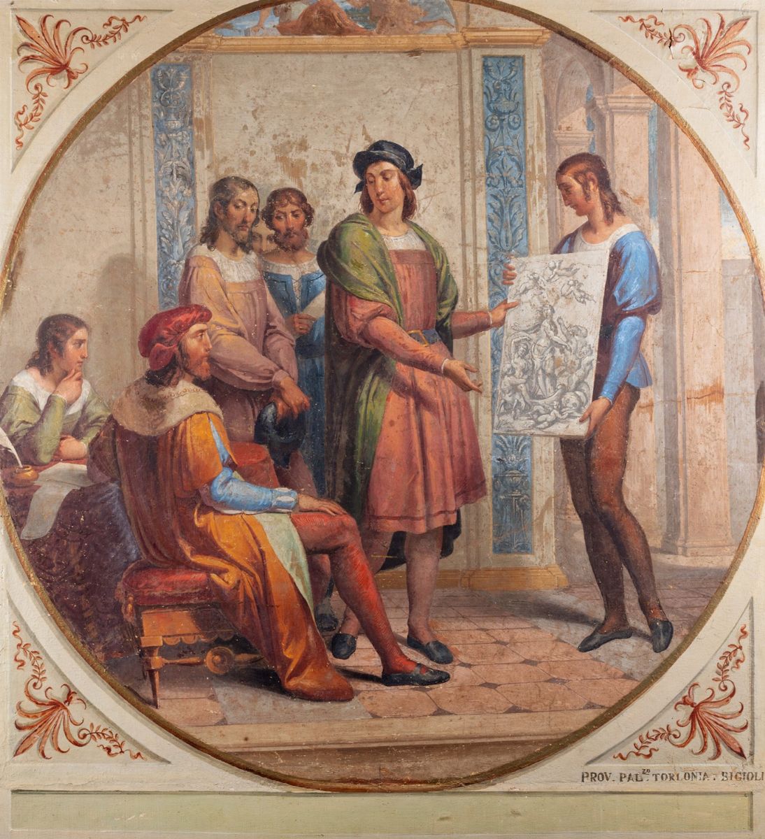 Fresco reproduced on canvas, originally within clypeus, 135 x 125 cm bears inscription lower right: PROV. PAL.ZO TORLONIA. BIGIOLI