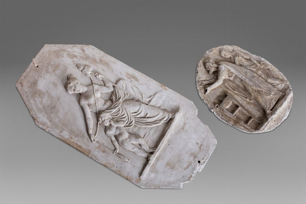 JULIUS TROSCHEL (Berlin 1806-Rome 1863) Two plaster plaques, one octagonal with a mythological subject and an oval with a sacrificial scene