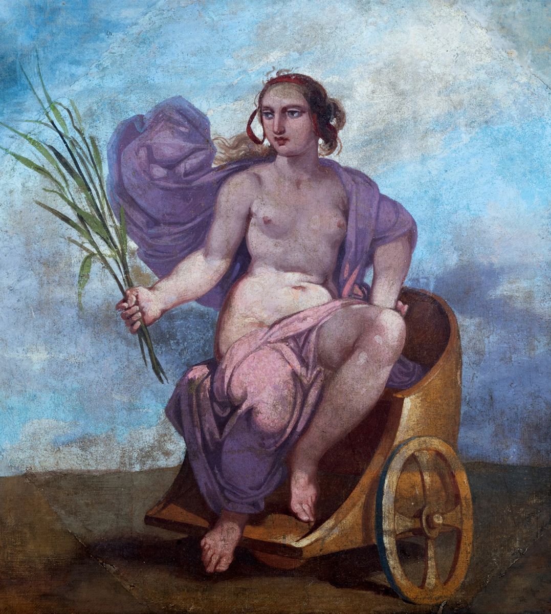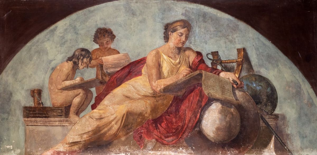 Traditionally this work is referred to to Alessandro Bombelli who for Prince Torlonia created large lunettes with allegories of the arts, however those illustrated by Iozzi in his volume dedicated to the Palazzo di Piazza Venezia are larger than that offered in the lot (see Iozzi, & nbsp; Il palazzo Torlonia & nbsp; cit., Rome 1902, p. 60s.).