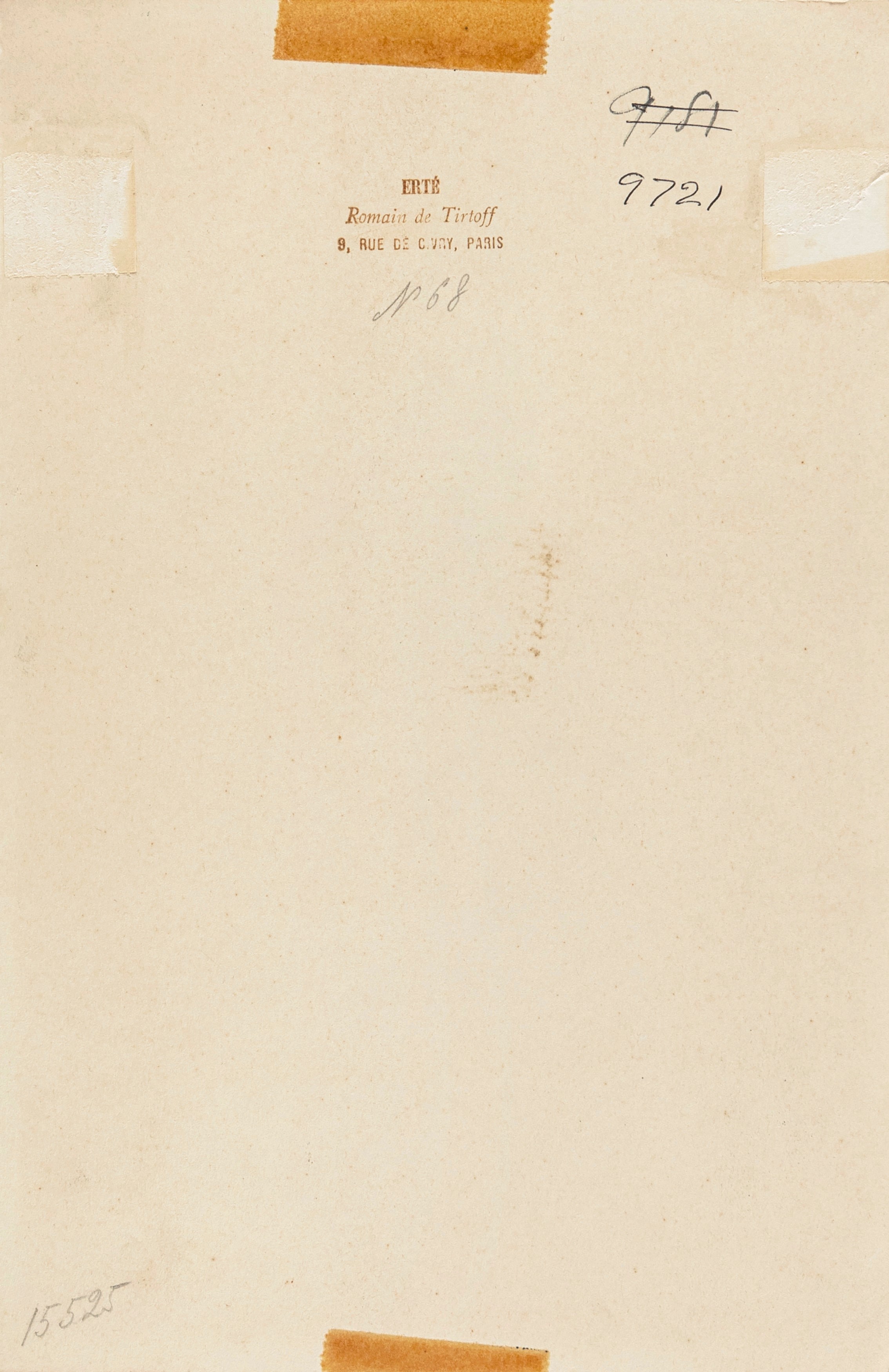 Original design made by Erté during the 1910s for a theatrical costume. Bearing the artist's stamp and archive number 68 on the back. Signed.