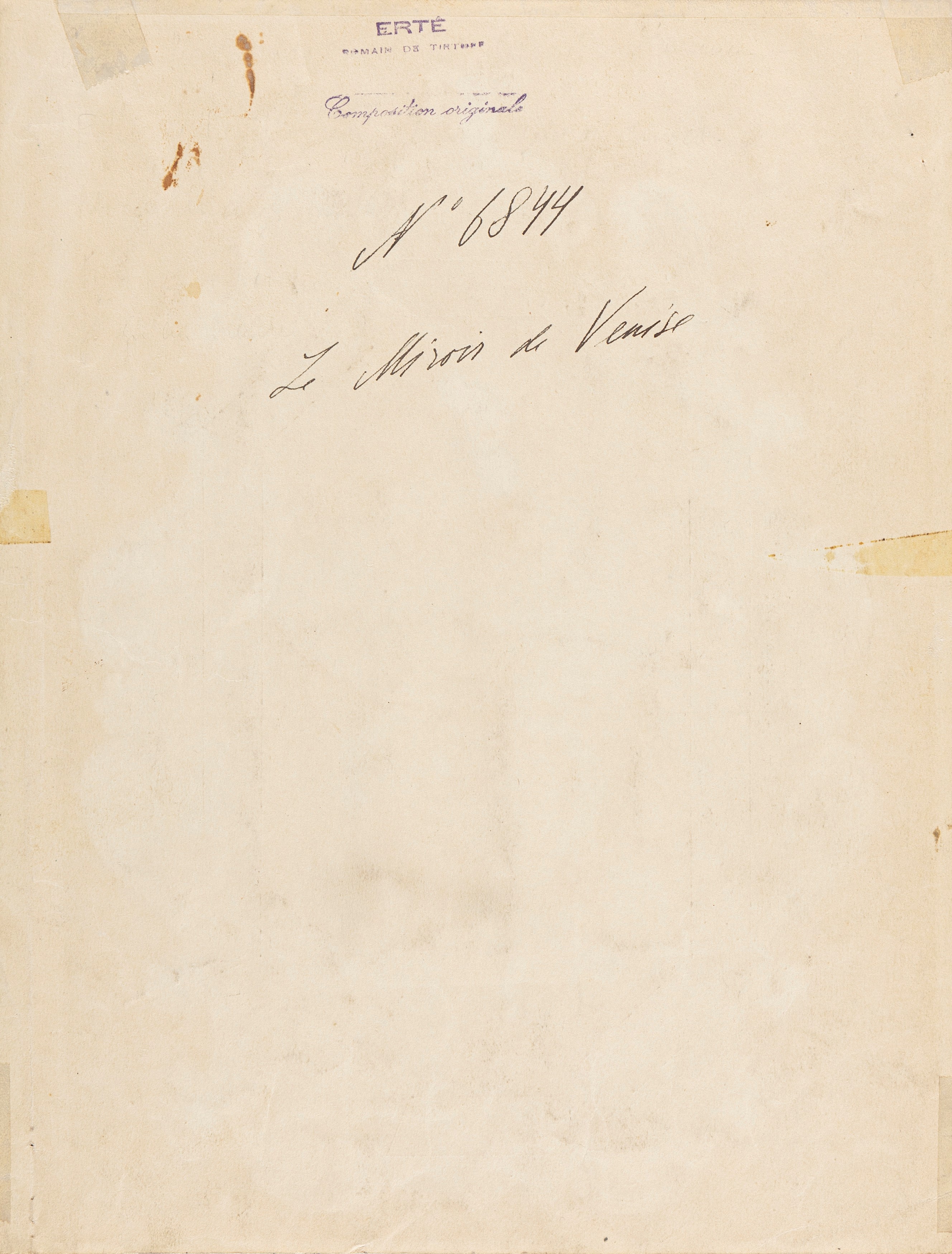 Original drawing made by Erté in the 1940s. Bearing the title, the artist's stamp and the archive number 6844 on the back. Slight creases on the margins. Signed.