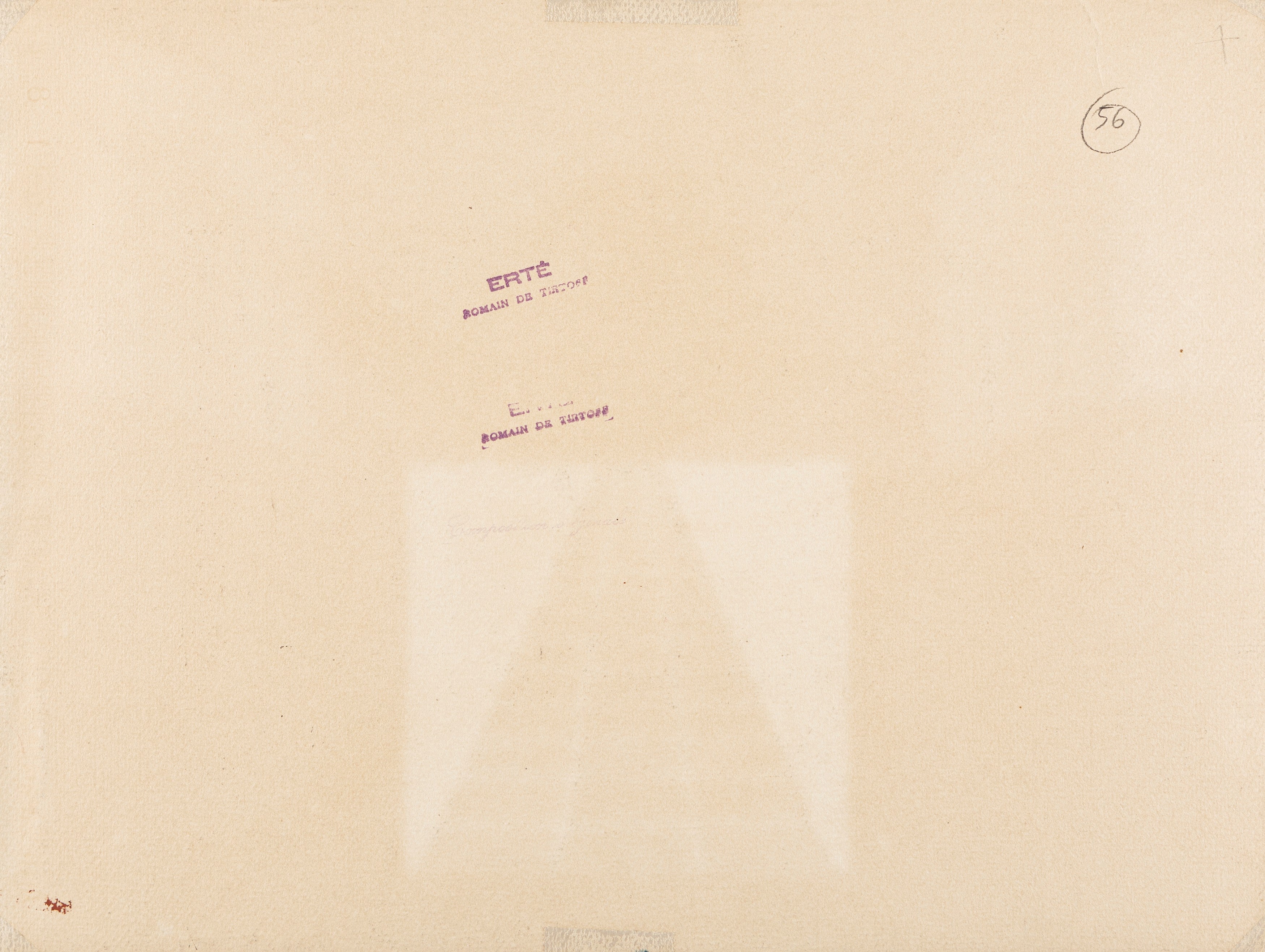 Original drawing made by Erté in the 1930s for the scenography of a theater work. Bearing the artist's stamp on the back. Signed.