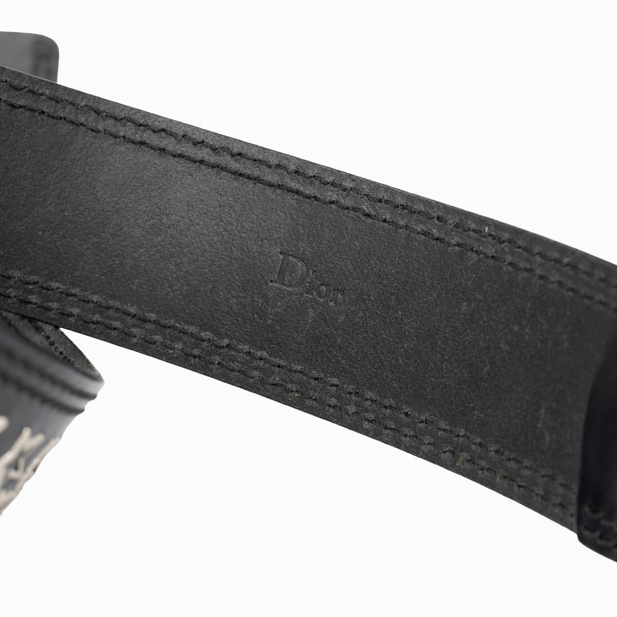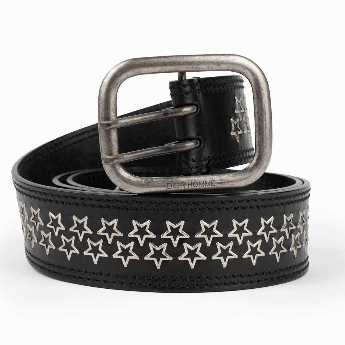 in black leather with application of silver-coloured metal stars, length 117 cm (size 100/115)