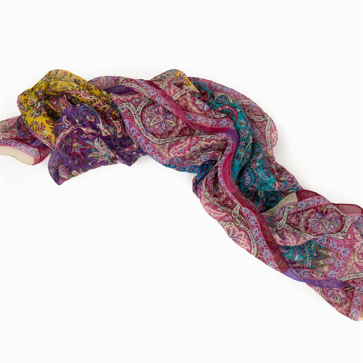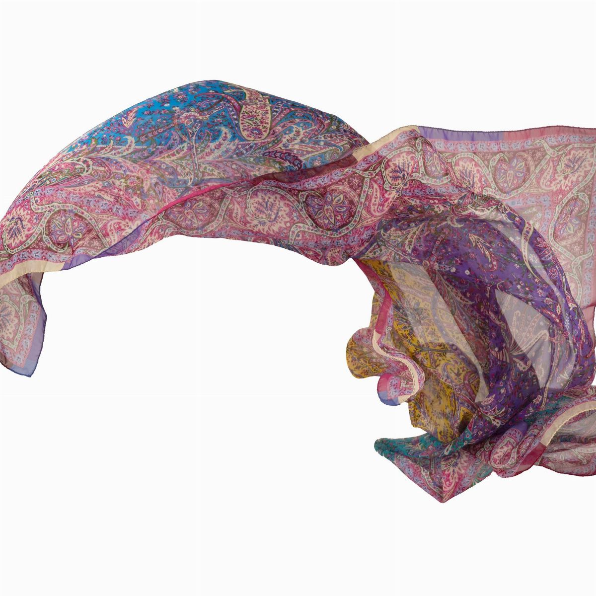 Large multicolor chiffon silk grand scarf, cm 137 x 137