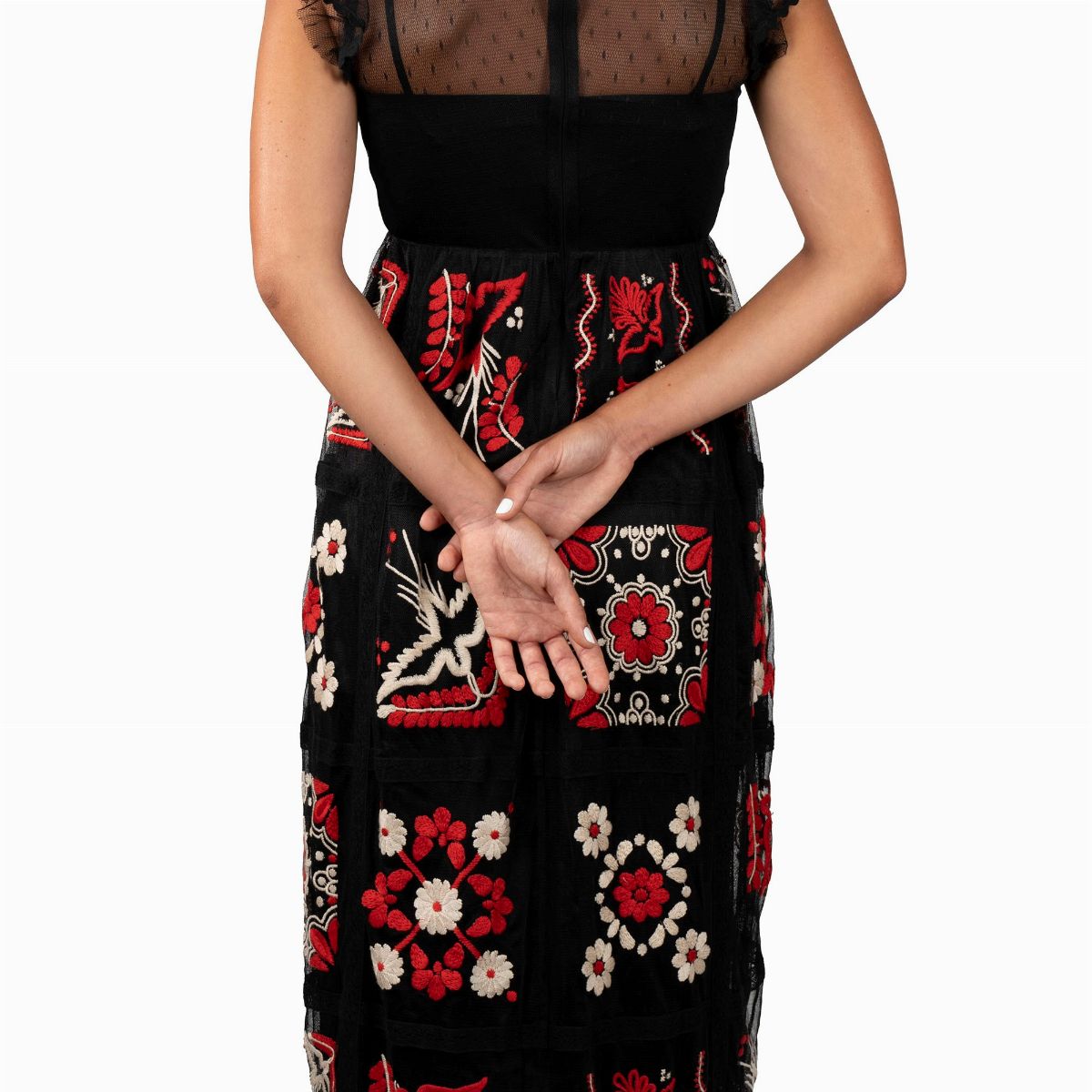 in tulle embroidered with white and red floral motifs, Italian size 38 (new, never worn)