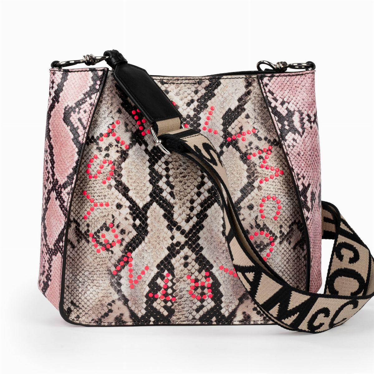 in printed python eco-leather, detachable and adjustable fabric shoulder strap, 22 x 23 cm, with bag
