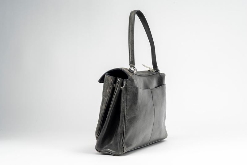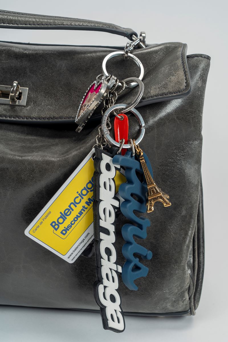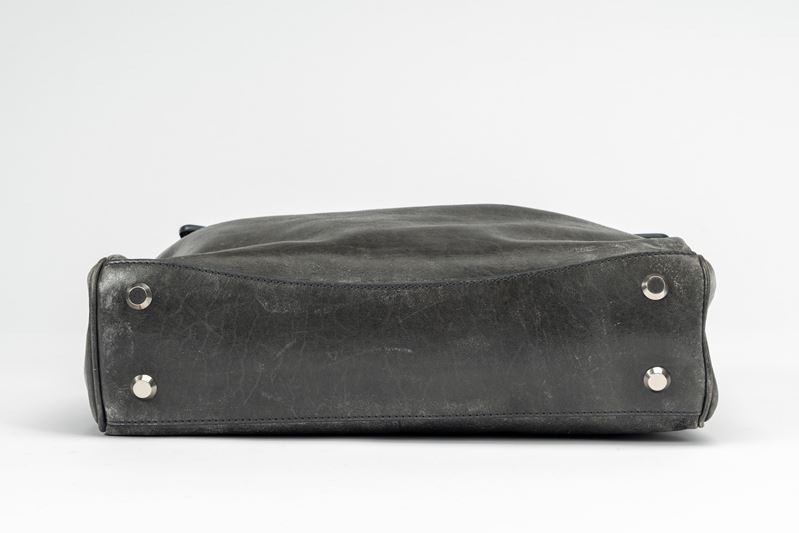 Grey leather with a Used effect Rodeo bag, double shoulder strap, metal details, with charms in different materials, cm 34, with dustbagStarting bid