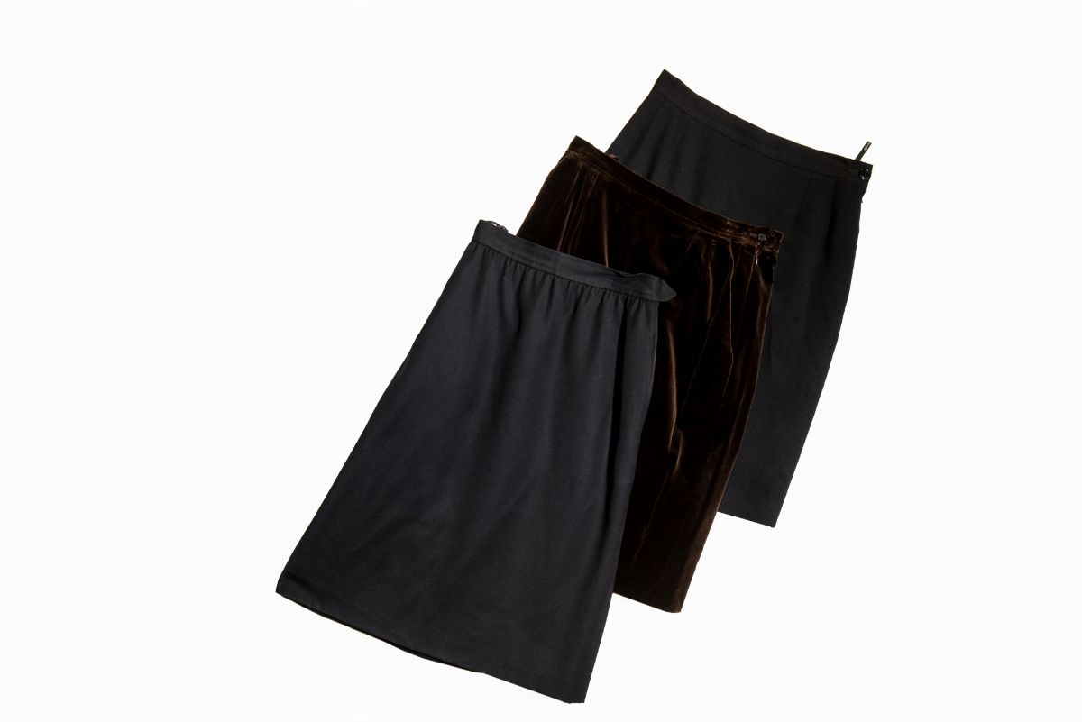 Lot of six wool, cotton, cupro and viscose skirts, five french size 44 and one french size 46