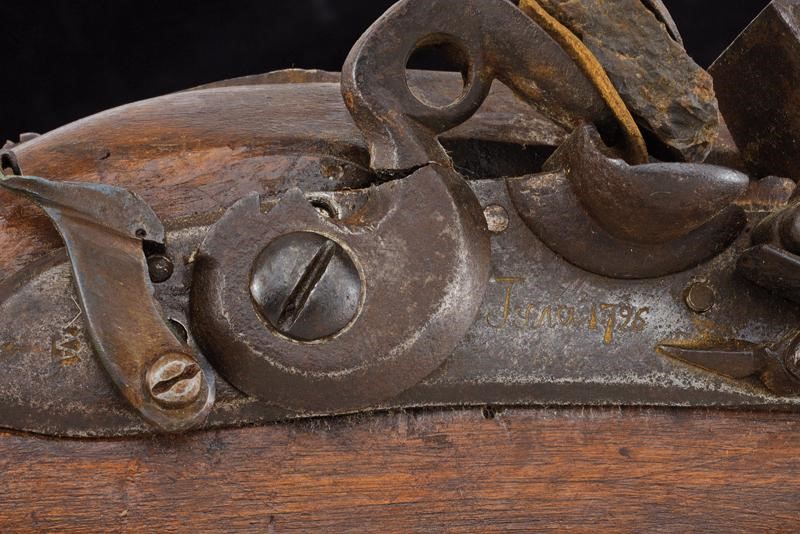 Large and short, two-stage, octagonal and round, iron barrel, 27.9 mm cal. at the nozzle (!). Moulding with rear sight at the breech; probably from early 18th century. Military lock marked "TULA" in Cyrillic and dated "1796", with external safety lock. A crack on the hammer throw. Stock probably from the 19th century but in 17th century style, similar to the archibugi type. Iron mounts and ramrod.