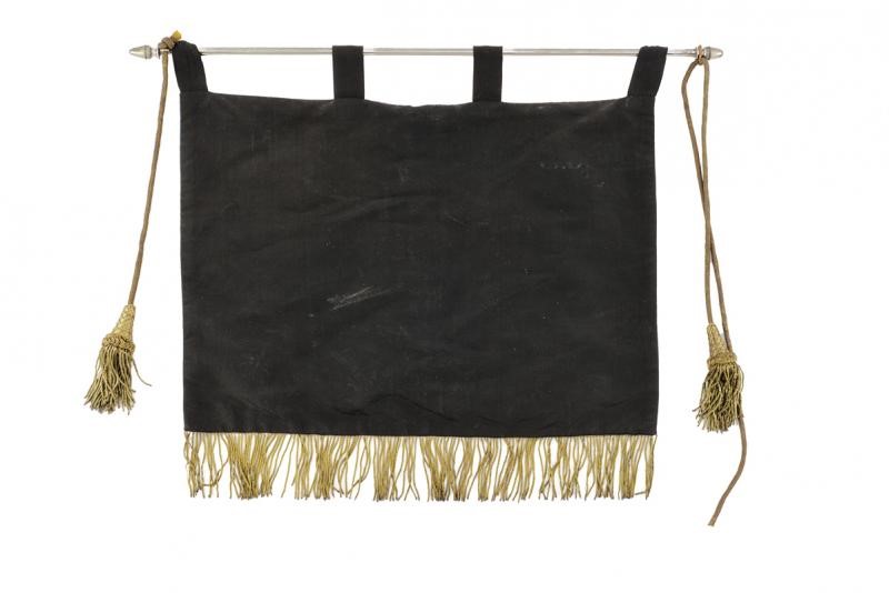 Rectangular, made of black silk, on one side a central fasces and inscription with bullion embroidery "FASCIO DI COMBATTIMENTO CASTEL DEL PIANO"; the lower part with bullion embroidery; with four bands fixed on a metal shaft decorated at the end with two tassels with bullion embroidery.