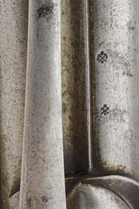 Round, rifled, 15 mm cal. barrels (bore with pitting, still visible rifling), the upper one signed "KARABEGOF", on the side marks of the Birmingham test bench; frame engraved with floral motifs. Butt made of checkered wood (crack), iron mounts decorated en suite, butt-plate with drum. Iron belt hook and articulated ramrod. In patina, needs cleaning.
