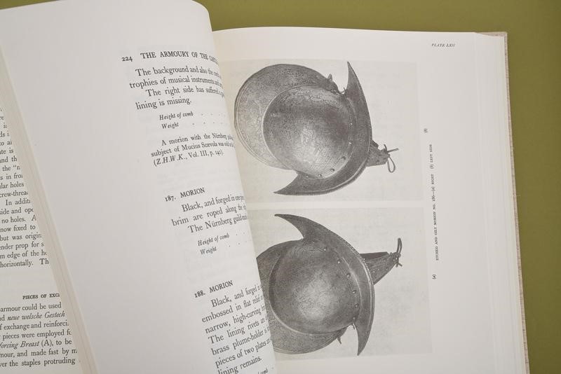 "L' armeria Trapp di Castel Coira - Die Churburger Rustkammer - The armoury of the Castle of Churburg". Two volumes. Hand-made cover binding, leather spine with gold imprints, cloth-covered hardback box. Vol. I: Anastatic reprint of the 1929 edition, 516 pp. with 72 two-colour ill., English text. Vol II: 404 pp., 610 colour and two-colour illustrations, Italian, English and German text. Copy no. 522 of 2000 copies, Magnus Editions.