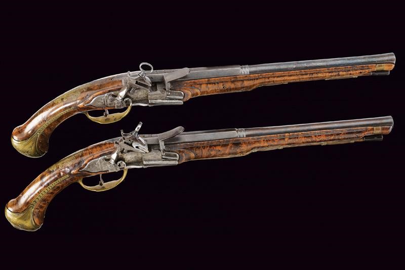 An interesting pair of Roman-style flintlock pistols