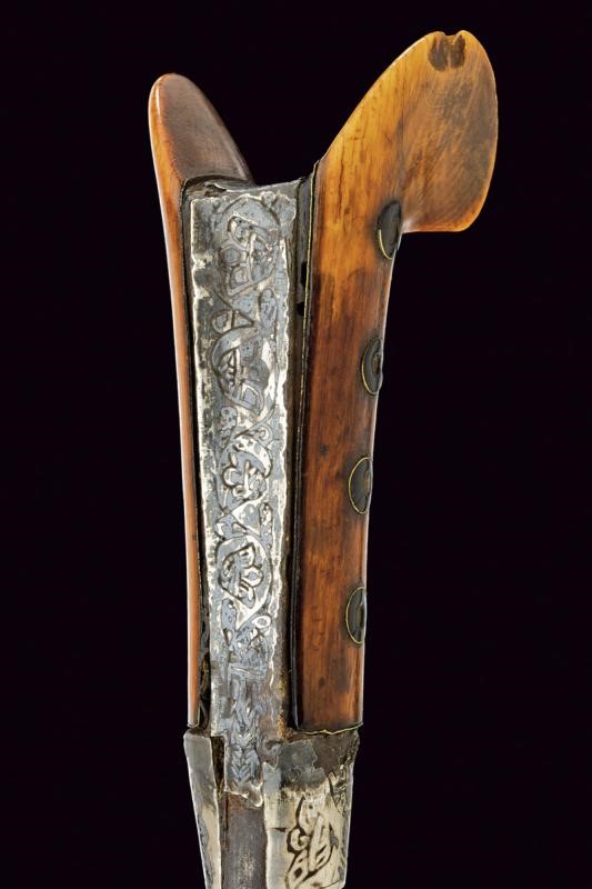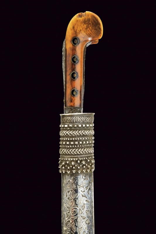 Interessante yatagan di piccole dimensioni con fine fodero in argento