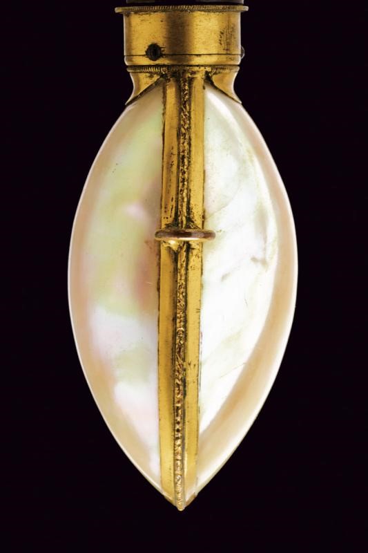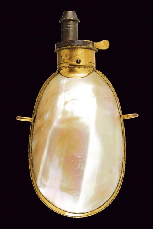 A rare mother-of-perl powder flask