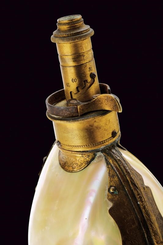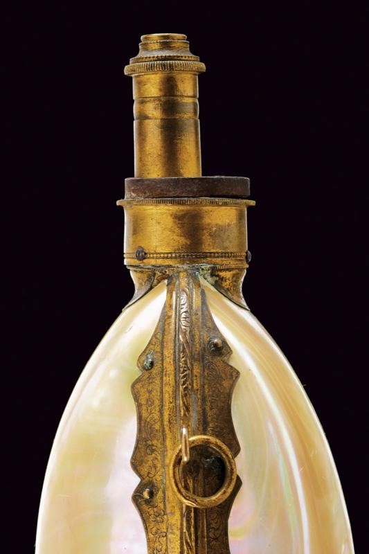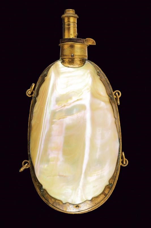 A rare mother-of-peral powder flask