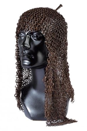 Composed of iron rings of different sizes and roped, small missing parts. At the top, circular base with convex centre and provided with a plume-holder.