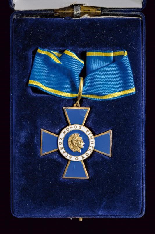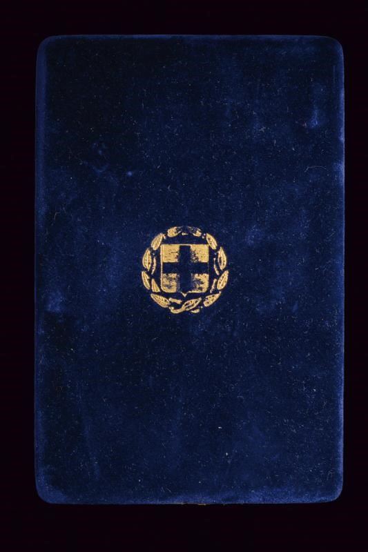 A knight commander's badge mark. Made of gilded and enamelled metal (some chips). With neck ribbon and in original case.