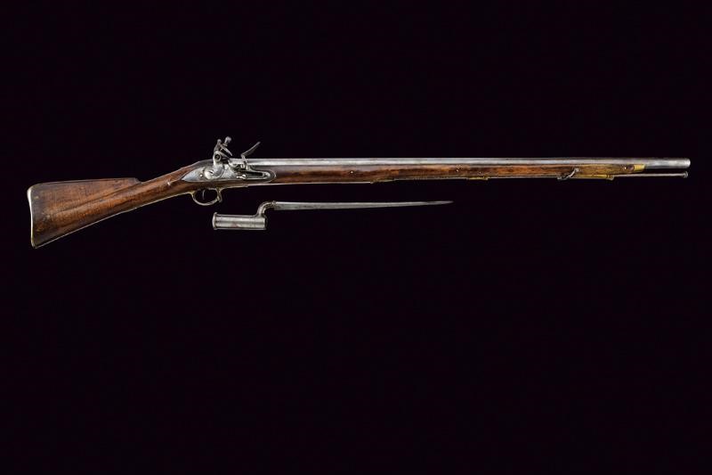 A Brown Bess flintlock gun with bayonet