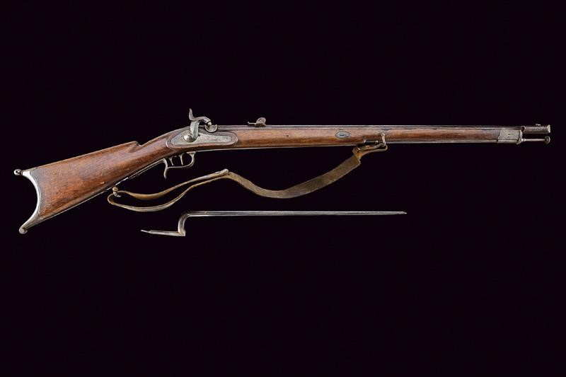 An 1851 model federal percussion carbine with bayonet, Mid 19th Century