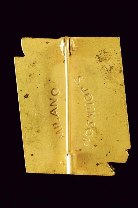 Royal Air Force badge of the 107th fast land bombardment group ‘BTV’; made of gilded metal and enamel; the back marked ‘S. JHONSON / MILANO’ and with vertical pin. Rare.