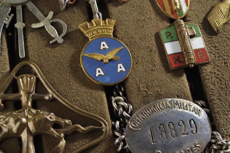 Lieutenant Colonel Amedeo Paradisi's personal case containing nine Italian and Spanish badges and pins. Together with a bracelet and a skull ring.