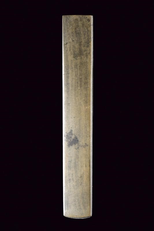 In shibuichi, with pale gold floral design on the front. Kept in a kiri-box.